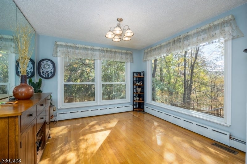 A RARE FIND! Discover this California Contemporary Split-Level perfectly nestled on 1.4 private acres in Bloomingdale! This spacious home features 3 bedrooms, 2 full baths, plus a flexible 4th bedroom/ home office / Family Room option. The light-filled main level showcases massive windows overlooking serene wooded treescapes, cathedral ceilings, hardwood floors, and fireplace that creates warmth and charm throughout. The finished lower level with separate entrance offers the perfect setup for an in-law suite or guest space; equipped with another fireplace for added coziness. Step outside to a large covered deck with a built-in grill, ideal for relaxing or entertaining while enjoying peaceful views of nature. Tucked away for privacy and serenity, yet part of a welcoming neighborhood setting. Complete with a 2-car garage and plenty of outdoor space. This One is Truly Special!