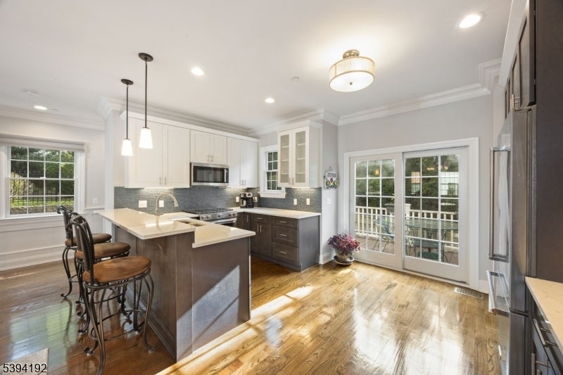 Welcome to this stunning, meticulously maintained 4-story brownstone townhouse located in the heart of Caldwell, NJ. Offering modern luxury combined with timeless character, this home boasts spacious living with 3 bedrooms, and 4 bathrooms. This is a RARE end unit, including extra windows, more natural light, more outdoor space, and most importantly, extra privacy that only this unit provides! Features: Four levels , crown moldings, and a Chef-Inspired Kitchen with two-tone cabinets complete with a stunning blue glass tile backsplash and top-of-the-line stainless steel appliances. This kitchen is a showstopper.Enjoy your morning coffee or unwind in the evening on the private upstairs maintenance free Trex deck, complete with overhead awning. The downstairs patio is perfect for outdoor dining and relaxing in the iNCLUDED luxurious Spa Hot tub!The 3 generously sized bedrooms offer plenty of closet space and natural light. The Kohler bubbler tub in the main bathroom is ideal for a relaxing soak after a long day. This home features air conditioning and an intercom system on every floor, including the attic, ensuring year-round comfort . The central vacuum adds extra convenience, making cleaning a breeze. Located in the desirable section of Caldwell, this home offers easy access to Bloomfield Avenue, shopping, restaurants, parks, and top-rated schools. Whether you're commuting to work or exploring local attractions, this location is both convenient and charming.