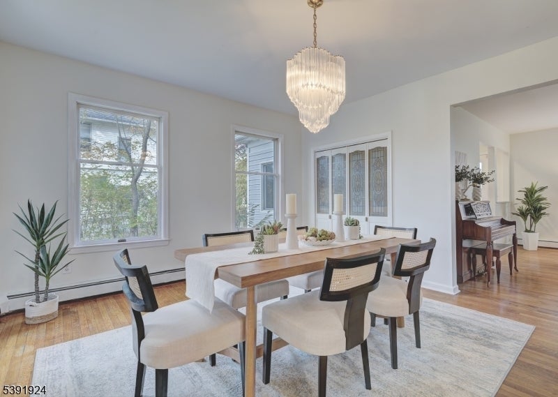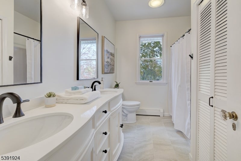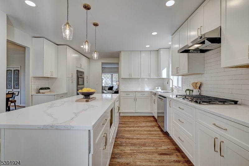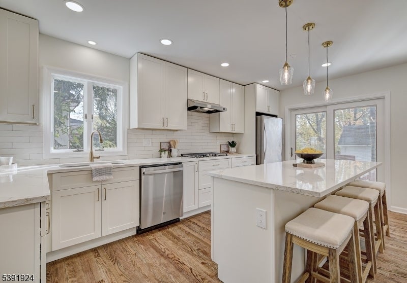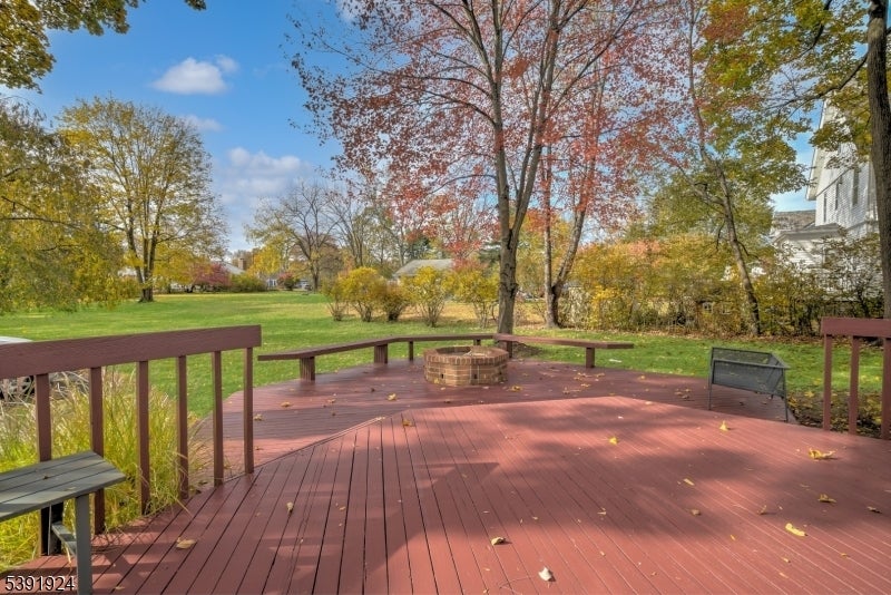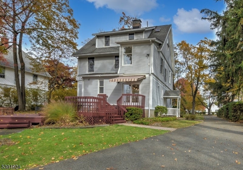 Sitting on the best lot along The Most Desirable Street in Town, this American Classic Colonial offers the perfect blend of timeless charm and modern comfort. Just steps to Central Park, the public library, and a 7-minute walk to the train & downtown, it's ideally positioned for in-town living. The newly remodeled kitchen features beautiful white cabinetry with elegant gold accents, gold-veined quartz counters, new oak floors, 4-seat breakfast bar, and a full suite of SS appliances with 5-burner gas cooktop, double ovens, under-counter microwave, dishwasher and vented exhaust. Sliders open to a freshly painted 2-tier deck with built-in fire pit & bench seating. The expansive & inviting third-floor primary suite offers two walk-in closets, exposed brick, plush new carpet, skylight and remodeled bath with double vanity & glass shower. Additional highlights include a full bath on the main level, remodeled second-floor bath, half bath off the finished basement rec room, living room with wood-burning fireplace and quarter-sawn oak floors, Sunroom/Family Rm, second-floor laundry, and gracious newly tiled entry foyer. A striking updated staircase with thick oak treads and a black metal balustrade adds architectural interest. The freshly painted interior in a soft neutral palette is bathed in sunlight from tall graceful windows, while oversized garage with loft storage, refreshed mature landscaping, paver walkways, & private driveway with turnaround complete this exceptional property