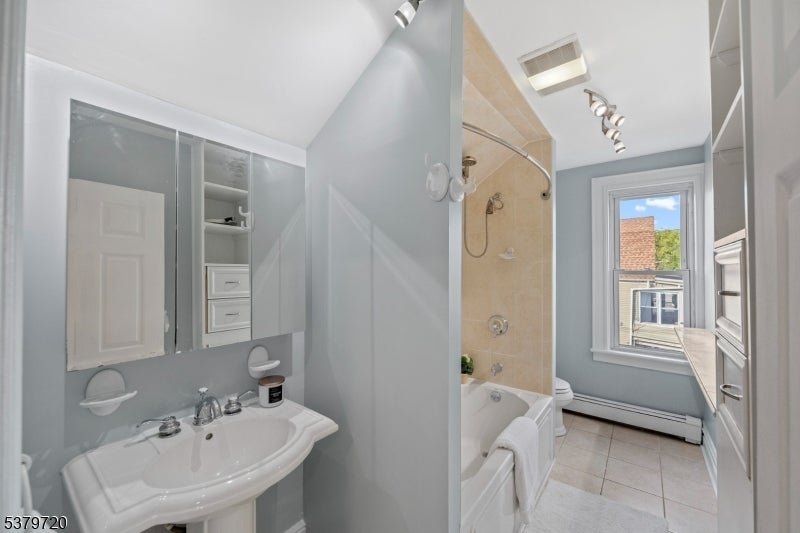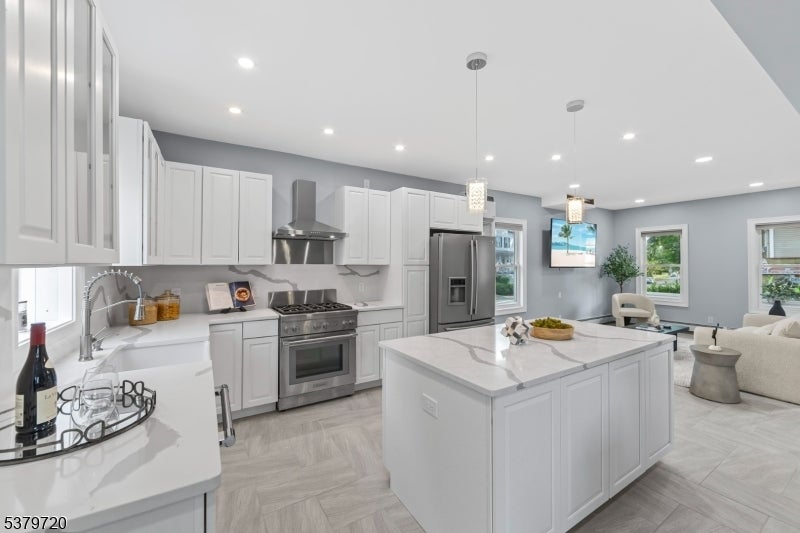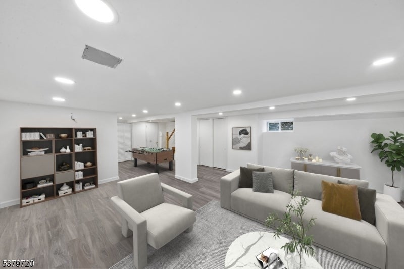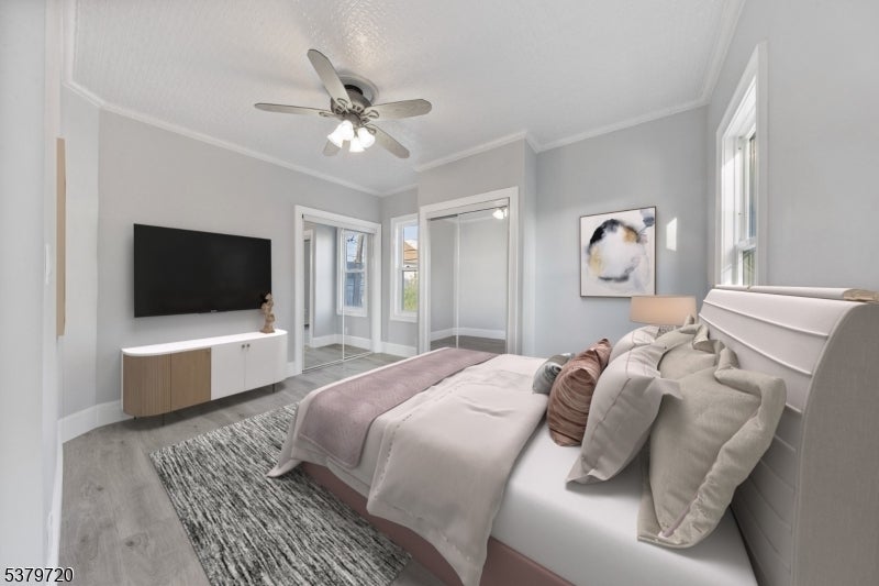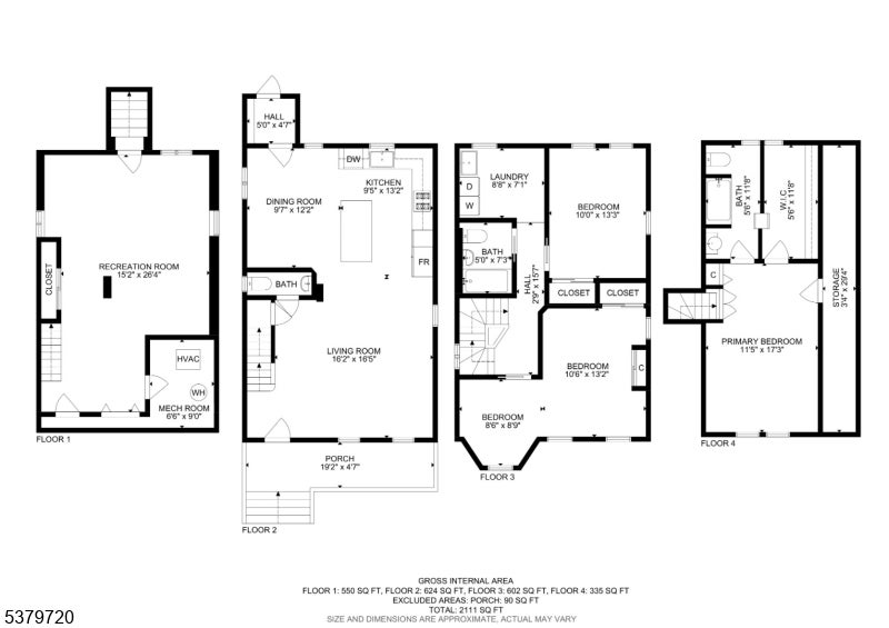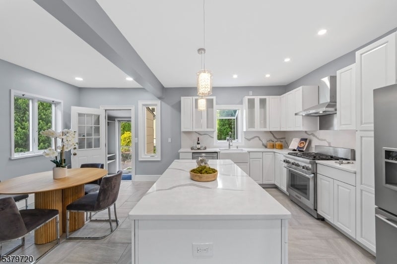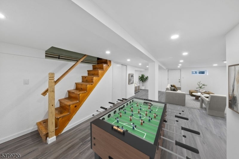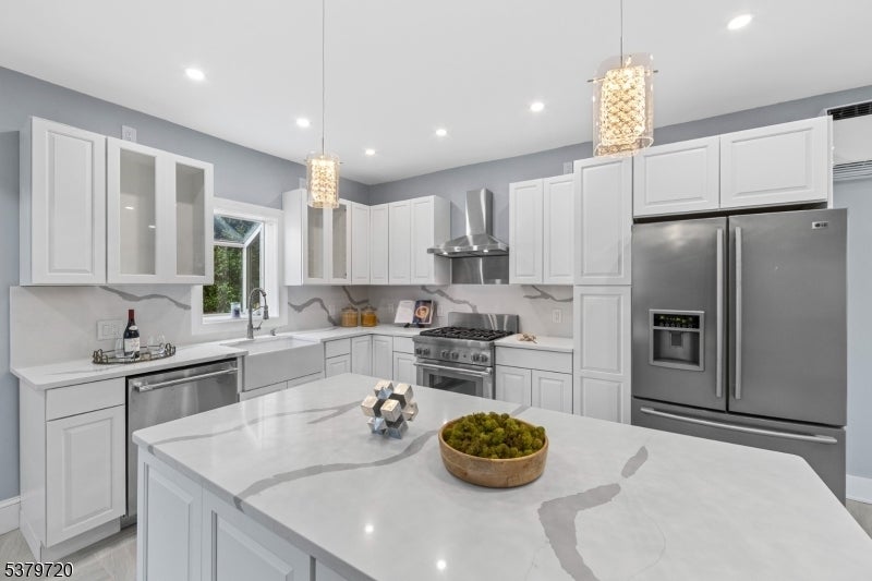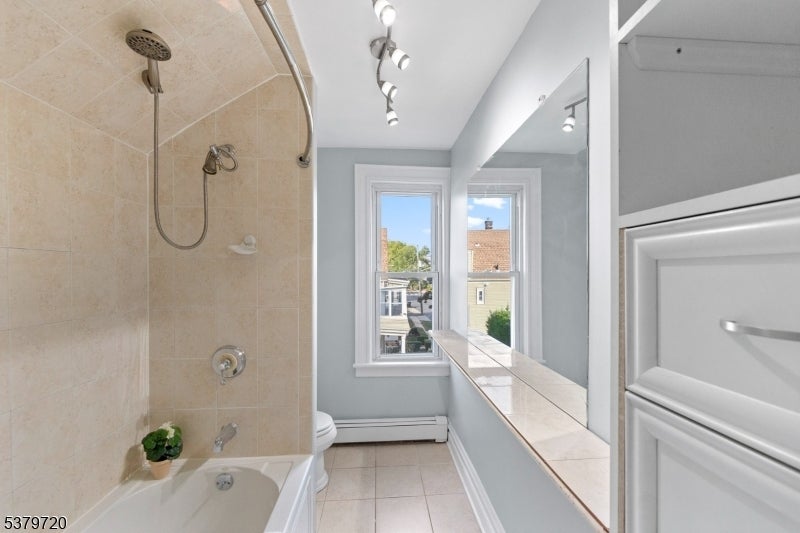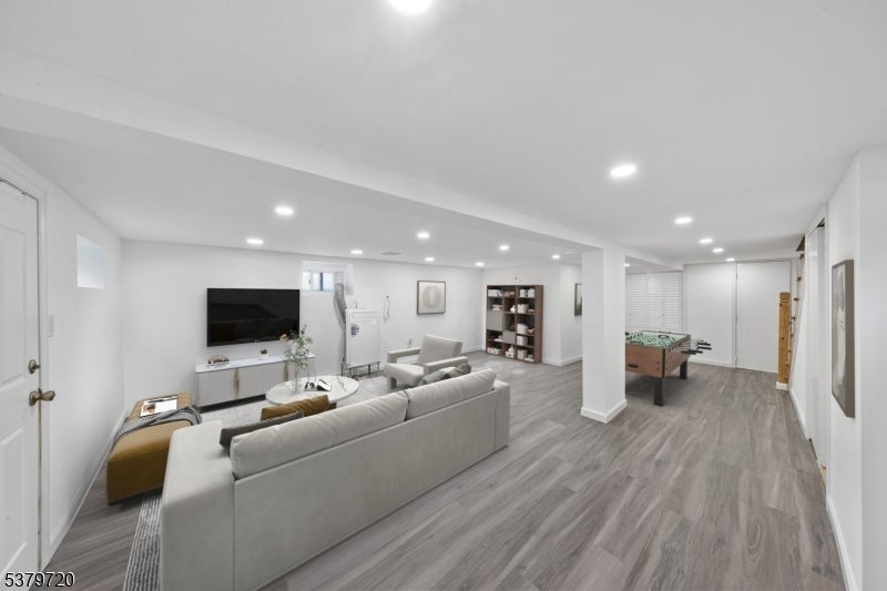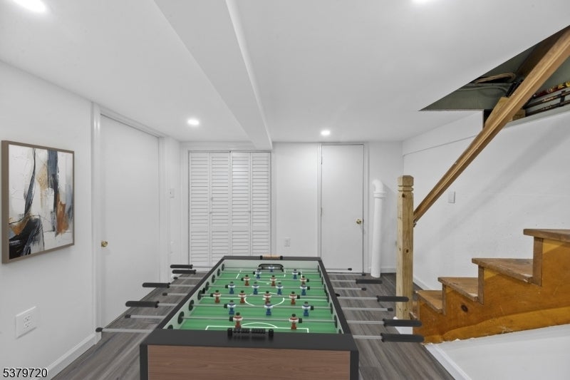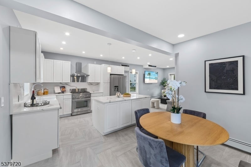 Stunningly renovated in 2025, this home offers four fully finished levels of modern living. The main level features a covered front porch, brand-new kitchen with custom cabinetry, quartz countertops and backsplash, upgraded appliances including a Thermador stove, plus all new flooring, windows, and lighting throughout. The 2nd floor includes two spacious bedrooms, a full bath, and laundry room. The 3rd floor is a private primary bedroom suite with a large walk-in closet. The finished basement, with its own entrance, adds versatile living space. Major updates include upgraded electric service and a roof replaced in 2015. Each floor has its own heating zone and built-in A/C. Outside, enjoy a fenced private yard with maintenance-free artificial grass, professional landscaping, storage shed, and a double-wide driveway for 4+ cars. cat 6 prewiring and main level TV included.