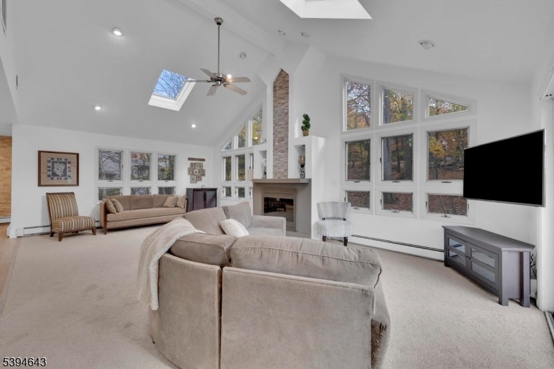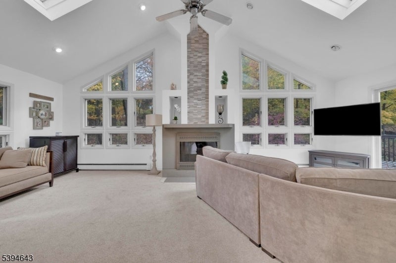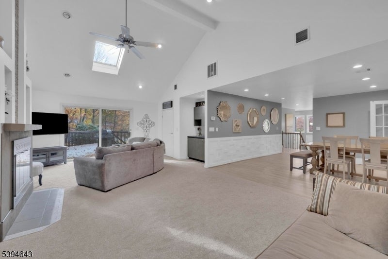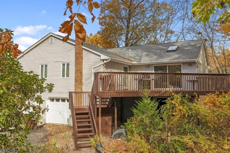 Welcome to 16 Dogwood Trail - a spacious 5-bedroom, 3-bath home blending comfort, natural light, and modern updates in a tranquil Randolph setting. The heart of the home is the enormous Great Room, featuring a focal fireplace, skylights and floor-to-ceiling windows offering sweeping views of the private, wooded backyard. A pair of sliders open to an expansive deck, perfect for entertaining or simply relaxing among nature. The chef's kitchen on the main, boasts abundant cabinetry, a breakfast bar, and flows seamlessly into a formal dining room ideal for gatherings.Also on the main level, the home offers three generously sized bedrooms and two full baths, while the ground level provides an amazing entertainment room, two additional bedrooms, a full bath, and a convenient laundry room along with access to the two-car garage. Freshly painted Great Room, new roof, multi-zone hot water baseboard heat, and central air ensure year-round comfort. Set on a quiet street within walking distance to Hedden County Park, and just minutes from the Randolph YMCA, train station, and top-rated Randolph School System. Enjoy privacy, convenience, and an ideal location - all wrapped in a home designed for everyday living and memorable moments.