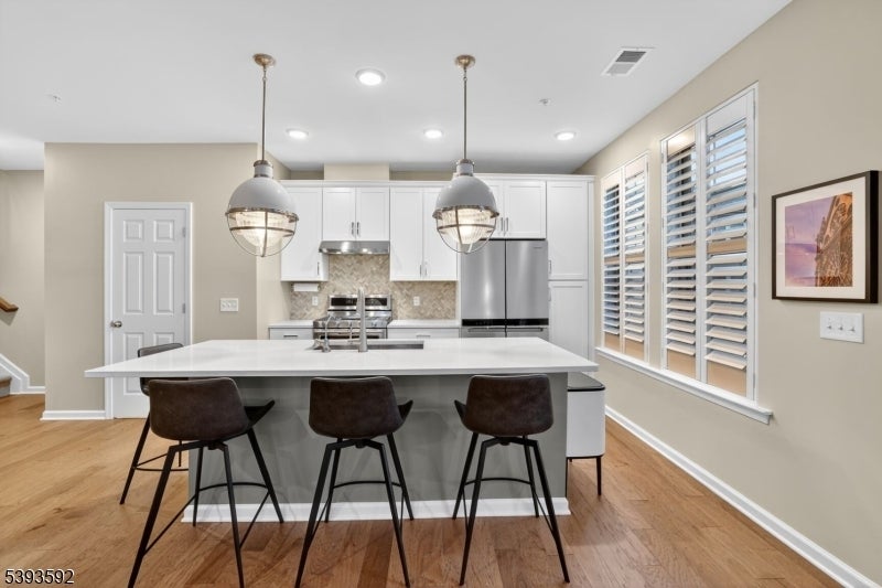 Welcome to this meticulously maintained Greenwich model townhome in the heart of Somerville, NJ. Built in 2021, this three-level residence offers 3 spacious bedrooms and 2.5 bathrooms, blending modern comfort with thoughtful design. Highlights include a whole-house charcoal water filtration system with reverse osmosis at the kitchen sink, elegant plantation shutters on the main floor, blackout blinds in all bedrooms, and solid oak shelving for added warmth. The gourmet kitchen features high-end stainless steel appliances, quartz countertops, and custom cabinetry, all seamlessly integrated into an open layout that connects the kitchen, dining, and living areas ideal for entertaining or relaxing. The primary suite boasts two large closets and a luxurious en-suite bath with dual vanities and a walk-in shower. Upstairs, enjoy a versatile loft/office, two guest bedrooms, and a spacious laundry room. Additional perks include upgraded lighting, an oversized one-car garage with extra private parking, and a balcony off the upper level. Conveniently located near major highways, shopping, dining, and a co-working space. Take advantage of a 20-year PILOT tax program currently in year 4 at a fixed 65% rate through year 19. Year 20 is billed at 80%, and thereafter the PILOT program ends, and the property is billed at 100%. This favorable rate offers long-term savings and stability. This exceptional property is ready to welcome you home.