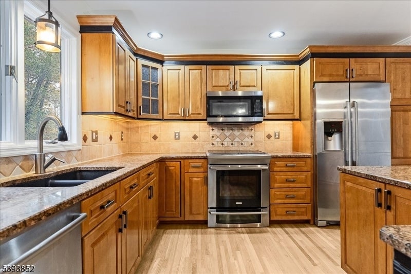 This property is a nature lover's dream! Stunning, bright and cheerful fully renovated colonial home on quiet tree-lined street.. From the comfort of your bright and sunny sun room, settle in and watch Mother Nature's beauty unfold.. this property is surrounded by state preserved property which not only gives you peace and serenity but also doubles as a haven for all wildlife.. watch birds build their nests, fox kits play, beavers build a dam, squirrels and deer run and all get ready for the winter season from the warmth of your home. Be a part of the birthing cycle in the Spring and the winding down cycle in late Fall.. Traditional colonial home with two-story entry, hardwood floors, decorative crown and box moldings, wood flooring, floor-to-ceiling stone fireplace in family room, custom kitchen with top-of-the-line stainless appliances, center island/breakfast bar, wine refrigerator, butler's pantry, mudroom, formal dining and living room. Spacious primary suite with luxurious bath, three additional bedrooms, and full bath on second level. Lower level is outstanding with slider leading to fenced in yard, paver patio and offers kitchenette, full bath with shower, two additional rooms and tons of storage. Home is located minutes from hiking trails and all that both Rockaway and Boonton has to offer.. This is a once in a lifetime opportunity to watch our local animal kingdom up close and personal.. it is truly spectacular.