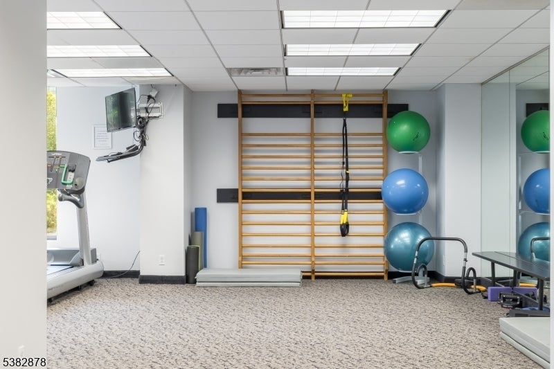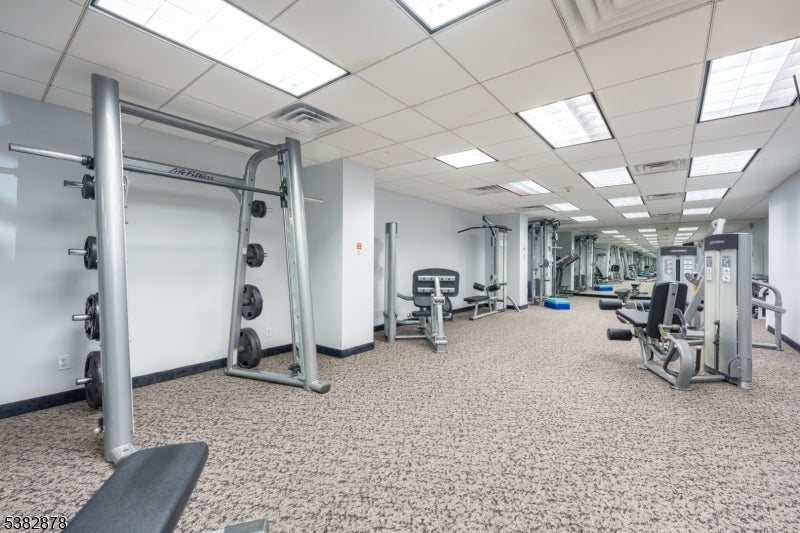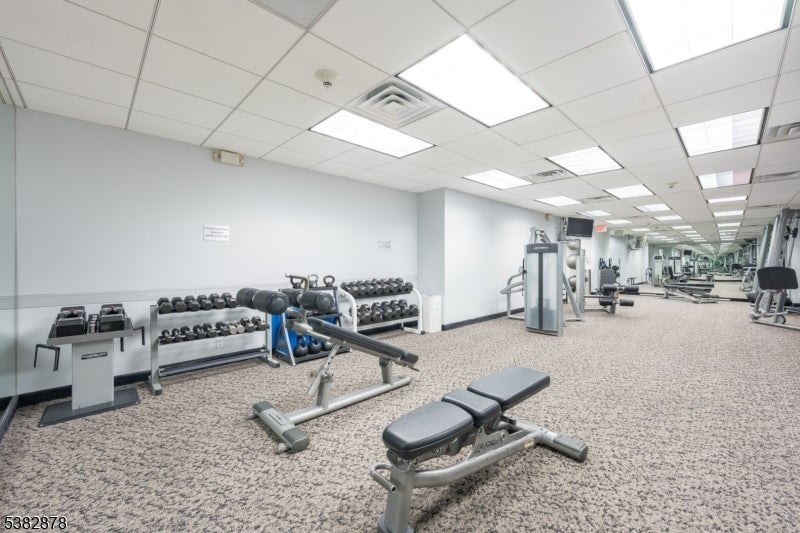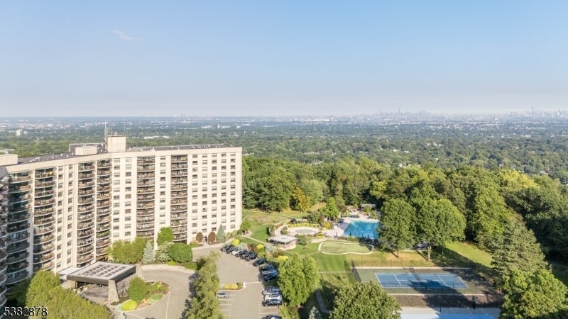Loft-Style 1BR + Den with NYC Views!Oversized 1-bedroom plus den, 1.5 baths with skyline views of Manhattan. Completely renovated for modern living with open-concept layout, hardwood floors, LED recessed lighting, fireplace, and large balcony. Kitchen features custom cabinetry, quartz countertops, Miele grill, induction range, and built-ins. Primary suite includes soaking tub, walk-in shower, and double vanity; powder room with travertine accent wall. Ample storage with custom walk-in closets, built-ins, laundry/utility room, and den/guest room/office with closet. Full-service hi-rise with 24/7 doorman, valet, concierge, heated Olympic pool, BBQ area, pickle ball + tennis courts, gym with sauna, putting green, library, and party rooms. Convenient location near Montclair, major highways, and NYC. One-time contribution at closing equal to 5 months common charges to Claridge Working Capital Fund. Parking available: Indoor $185/mo, Outdoor $160/mo, Unassigned $75/mo.