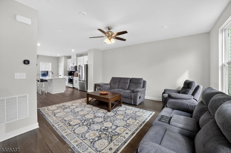 Modern Living Meets Small-Town Charm! Built in 2023 within the sought-after Hackettstown Crossing community, this stunning three-level townhome blends modern finishes with everyday comfort. The entry level features a welcoming foyer, convenient garage access, and a spacious flex room providing additional living space for a playroom, home office, or gym with sliders to a private patio. The main living level impresses with an open-concept design with wide-plank floors, recessed lighting, and a seamless flow between the living room, dining room, and designer kitchen. The gourmet kitchen showcases quartz countertops, a large center island with breakfast seating, subway-tile backsplash, stainless-steel appliances, and access to a sunny deck perfect for entertaining or relaxing outdoors. Upstairs, the luxurious primary suite offers a tray-ceiling, walk-in closet, and private bath with double vanity and spa-style shower. Two additional bedrooms share a full bath, and the laundry area is conveniently located on the same level. Enjoy low-maintenance living with professional landscaping, sidewalks, and easy access to Route 46, 80, and 206, as well as shops, restaurants, and the train station. Move-in ready and impeccably maintained this is modern Hackettstown living at its best!
