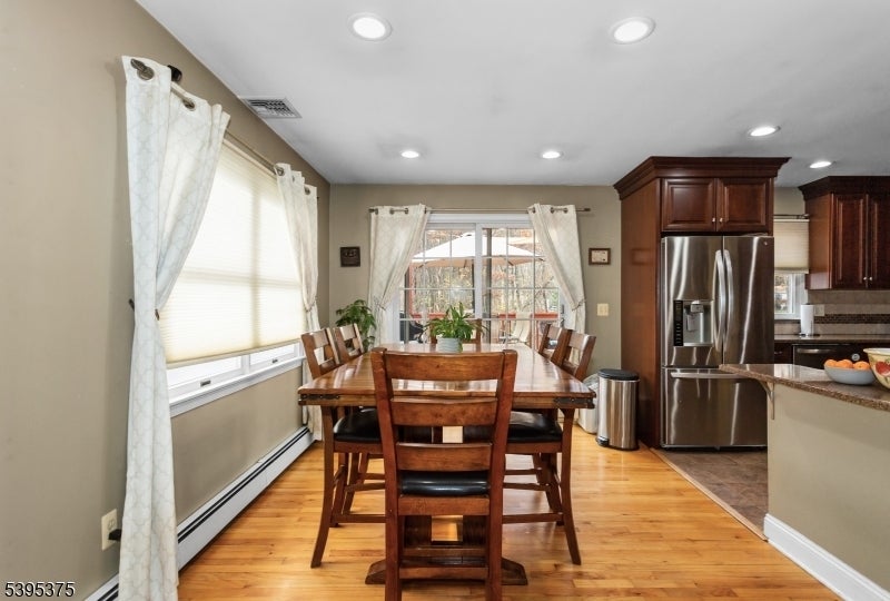 Gorgeous Updated Bi-Level on 1 Acre Lot! Welcome home to this beautifully maintained 4-bedroom, 2-bath bi-level nestled on a peaceful lot surrounded by nature. The main level features a bright and inviting living room with hardwood floors, recessed lighting, and a cozy wood-burning stove, perfect for chilly evenings. The updated kitchen boasts rich cherry cabinetry, stainless steel appliances, and a spacious dining area that opens to a large deck, ideal for outdoor dining and entertaining. The lower level offers a comfortable family room with direct access to the patio and backyard. Step outside to enjoy the expansive yard, complete with a fire pit area, 2 sheds, and ample space for gardening or play. Additional highlights include a 1-car garage, central air, updated baths, and a private wooded backdrop for serene living, all just minutes from local schools, parks, and major routes!