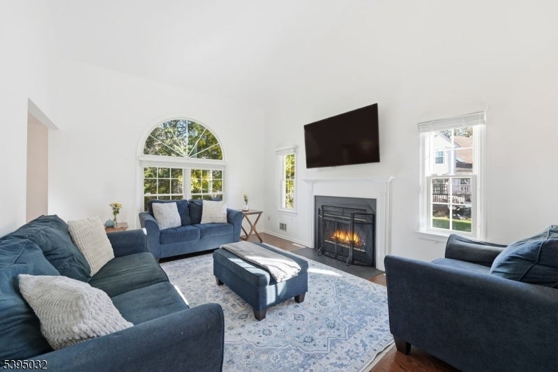 Welcome to Chambers Brook, one of Branchburg's most sought after communities! This beautifully maintained 3 bedroom, 2.1 bath end unit townhouse is the perfect place to call home. Tucked away at the end of a quiet cul-de-sac, it offers the ideal blend of privacy, convenience, and style. Enter through the open side yard into a warm, inviting interior featuring gleaming hardwood floors and a versatile den, currently a playroom, but can easily be used as a home office. The impressive two story living room showcases a wood burning fireplace, elegant palladium windows, and vaulted ceilings that fill the space with natural light. The spacious dining area opens to a deck, perfect for grilling, morning coffee or relaxing at night. The well appointed kitchen offers stainless steel appliances, hardwood flooring, and potential for an island to expand your culinary space. A powder room, laundry area, and direct garage access complete the first level. Upstairs, the primary suite fits a king bed and features dual closets (one walk in) and a private ensuite with a soaking tub and stall shower. Two additional bedrooms and a full bath complete the upper level. The large unfinished basement provides endless potential for recreation or storage. Freshly painted and move in ready, this home is minutes from Somerville, Bridgewater, and Flemington, with easy access to major highways, NJ Transit, shopping, parks, and dining. Low quarterly HOA of $258.50 includes lawn maintenance!
