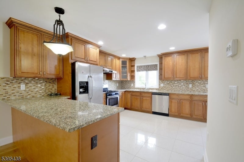 Stunning 3-Story Imperial Stone Home in Prime Hackensack Location! Don't miss this incredible opportunity to own a 3-story home featuring an impressive imperial stone facade, superb paver driveway, and level lot. Step inside to find gleaming hardwood floors, recessed lighting, and abundant natural light through oversized Andersen windows. The spacious living room flows seamlessly into the elegant dining area with chandelier and convenient half bath. The modern kitchen boasts granite countertops, stainless steel appliances, ceramic tile floors, custom cabinetry with Lazy Susan, and an extraordinary backsplash. From the kitchen, step out to your private deck and fenced backyard perfect for entertaining or relaxing outdoors.The fully finished ground level offers a large family room, laundry area, two closets, half bath, and garage access. Upstairs features three spacious bedrooms including a luxurious primary suite with two closets and a full bath. All bathrooms showcase elegant tile finishes. This home also includes two-zone central A/C, remote garage opener and extra insulation for efficiency. Ideally located near NYC transportation, Hackensack train station, major highways, shopping, dining, and Hackensack University Medical Center. Minutes to bus stop to NYC. Move right in and enjoy the best of comfort, convenience, and value!