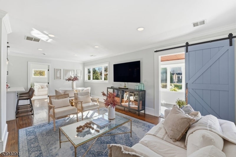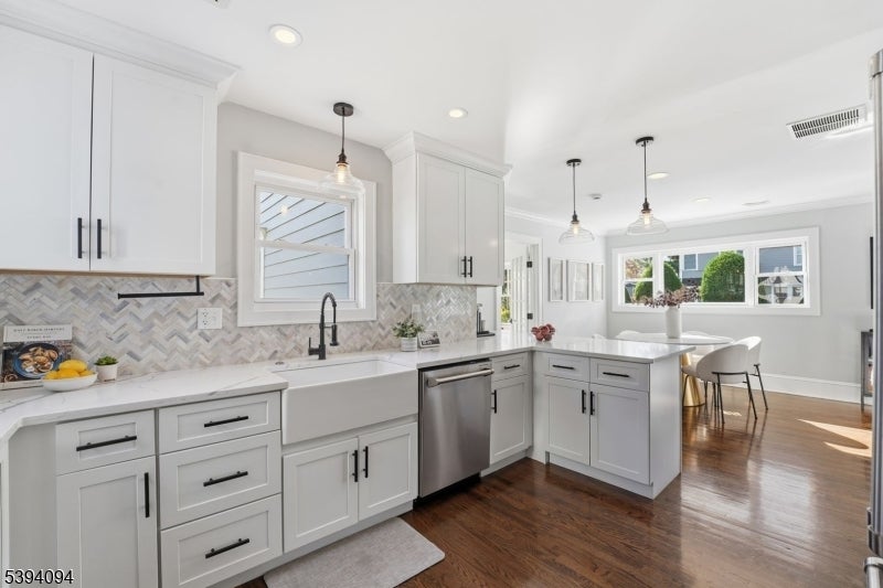 Discover effortless luxury in this exquisitely renovated 4BR, 3.5-bath Colonial in Chatham Borough's sought-after Manor Section. With new Hardie Plank siding and refreshed landscaping, it exudes timeless curb appeal and welcomes you into a sunlit foyer with stylish shiplap detailing. The modern kitchen showcases custom two-tone cabinetry, sleek black hardware, quartz countertops, a marble herringbone backsplash, a farmhouse sink, and premium stainless steel appliances. A spacious breakfast bar opens to the bright dining area, perfect for both casual meals and elegant entertaining. A sun-filled all-season sunroom, located off the living room, includes a built-in mudroom area with hooks and bench seating and provides direct access to the beautiful patio. The family room, accented by a classic white French door, offers versatility as a playroom, home office, or guest retreat with it's ensuite full bathroom, while a powder room and laundry room complete the first level. The 2nd fl has 4BRs, 2 FBs. The bright primary suite boasts a chic bathroom, and exceptional closets with an adjacent BR serving as a walk-in closet. It can easily be converted back to a bedroom but who would want to?! The expansive lower level offers high ceilings, rec room, and a double-wide garage. Additional highlights include a whole-house generator and the ultimate convenience of Chatham's vibrant downtown, Midtown Direct train station, and top-rated schools just moments away. This is a must see home!