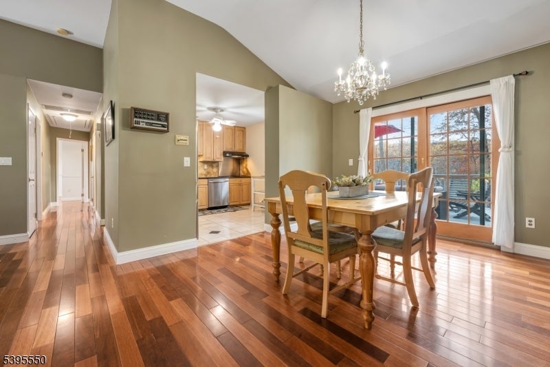 Welcome to this beautifully maintained home nestled on a peaceful, tree-lined lot offering comfort, privacy, and charm. A private driveway leads through mature landscaping and lush greenery, setting the tone for the natural beauty surrounding the property.Inside, discover an inviting open layout filled with warmth and light. The main level features cathedral ceilings, mahogany hardwood floors, and seamless flow between the living and dining areas ideal for everyday living or entertaining. The dining area opens to a large elevated deck, perfect for morning coffee or evening gatherings.The kitchen is designed with stainless steel appliances, granite countertops, custom tile backsplash, and rich wood cabinetry for both style and function.Generously sized bedrooms feature hardwood floors, natural light, and ample closet space. The primary suite offers a tranquil retreat with peaceful views of surrounding trees. Bathrooms are tastefully maintained with timeless finishes. The spacious lower level includes a stunning brick fireplace and flexible living space great for a family room, home office, gym, or playroom.Outdoor living shines with a private backyard oasis, complete with a deck and lower patio ideal for barbecues or quiet moments. Conveniently located near schools, parks, shopping, and major commuter routes, this home offers comfort and accessibility in a serene setting. Enjoy the perfect blend of indoor and outdoor living, surrounded by nature's beauty year-round.