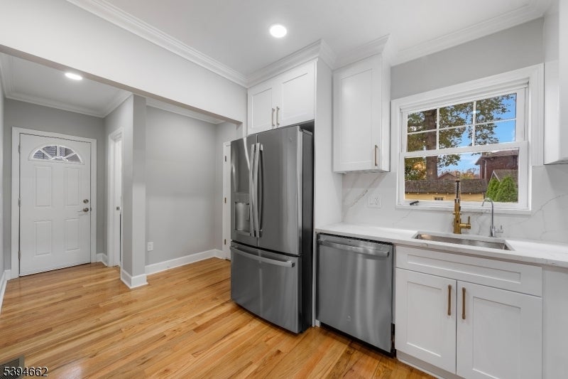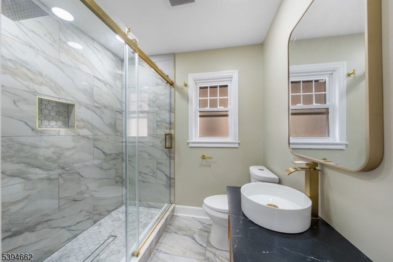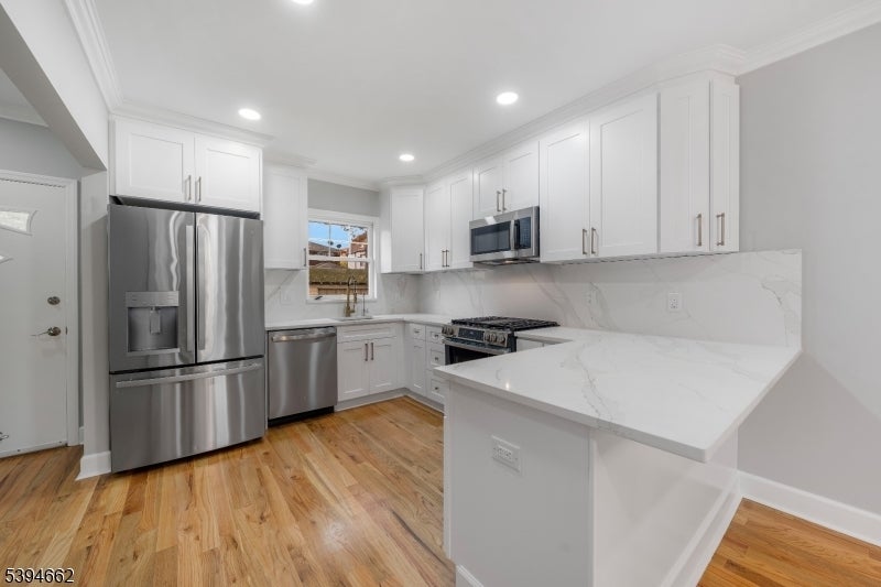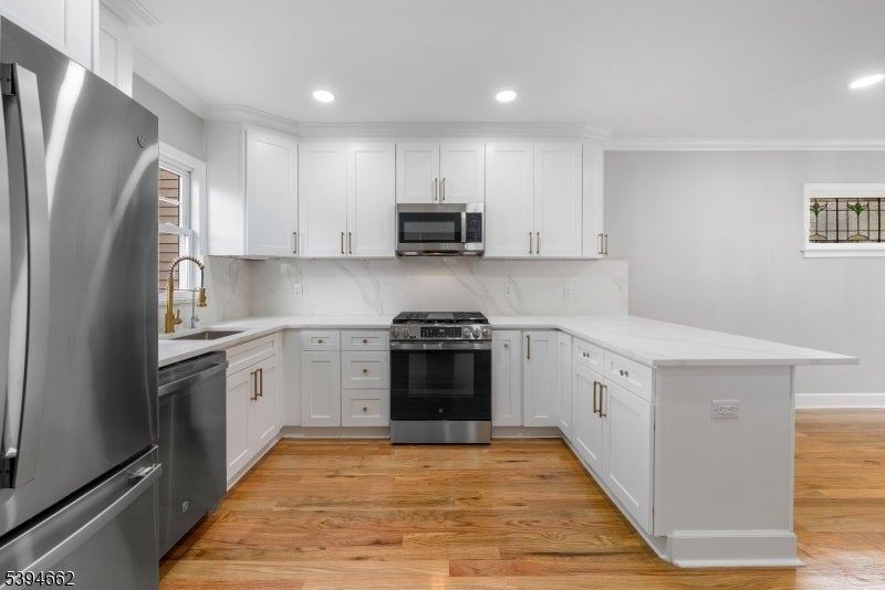 Meticulously rebuilt from the ground up, 299 Greylock is a stunning 2-bedroom, 1.5-bath Colonial that perfectly blends timeless charm with modern sophistication. Step through the welcoming vestibule and French doors into a bright, open layout! The living room, featuring a gas-log fireplace, sets a warm and cozy tone, while the versatile den offers practicality and a private space for an office or playroom. The stylish dining area flows effortlessly into the show-stopping designer kitchen, which boasts a quartz peninsula, sleek stainless-steel appliances, and custom cabinetry that shines under elegant lighting. Step directly from the kitchen onto your deck and into the spacious backyard. A chic half bath completes the main level. Upstairs, you'll find two spacious bedrooms, including a primary suite with a walk-in closet, and a beautifully renovated full bath completing this floor. The full basement offers walk-out access, laundry, fresh epoxy floors, and abundant storage. Every inch of this home has been renewed with quality and intention including a new roof, siding, windows, insulation, HVAC, plumbing, electrical, lighting, flooring, and a waterproofed basement ensuring comfort and peace of mind. Outside, a two-car garage, new driveway, and fresh landscaping complete the perfect picture. This turn-key gem offers refined living where every detail delights just minutes from major highways, shopping, dining, and an easy commute to NYC!