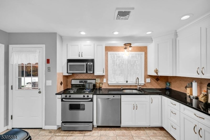 Your search ends here! This spacious 5 bedroom, 3 bath home for rent offers comfort, functionality and modern appeal throughout. The kitchen boasts white cabinetry, SS appliances and granite countertops with a separate dining area to enjoy. The first floor living room boasts vaulted ceilings with skylights creating a bright and open feel. A first floor bedroom option includes a walk in closet, while the laundry room and full bath complete this level. Upstairs you'll find four additional nice size bedrooms and another full bath. The finished basement provides extra living space, a convenient bath and plenty of storage. Enjoy outdoor living with a deck off the kitchen, fenced in yard and a two car attached garage offering additional storage space. Located on a quiet cul-de-sac in a desirable neighborhood, yet close to stores, highways, and restaurants this home truly has all that you need!