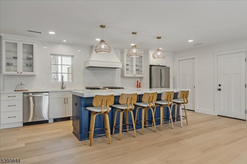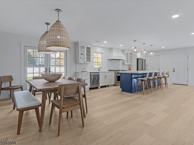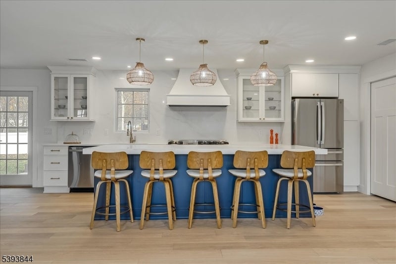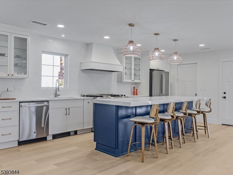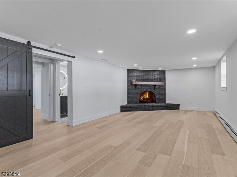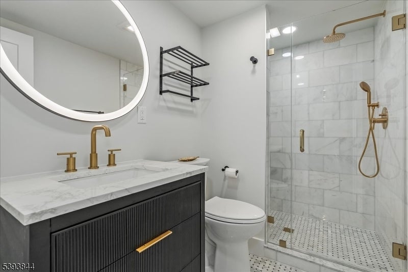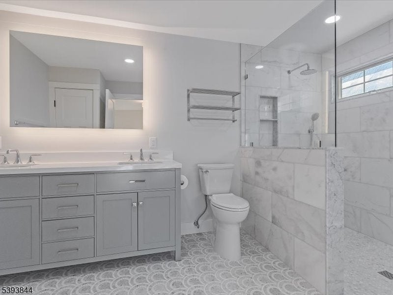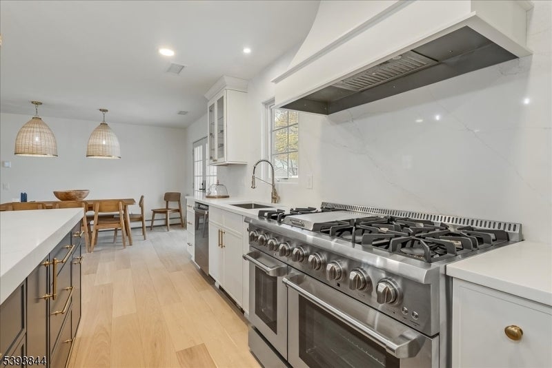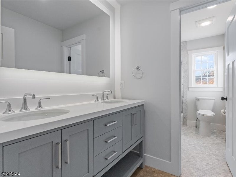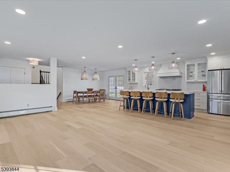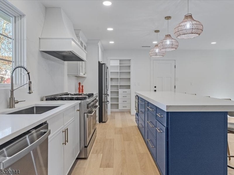 Spectacular gut renovation with high-end finishes in the heart of Morris Plains. This is not a typical renovation; the house is nearly a new construction. The main level has an open floor plan that includes a kitchen, dining and living room. The kitchen is a chef's dream with custom cabinetry, oversized island with extra deep top-of-the-line quartz countertop and backsplash, a new 6 burner stove, dishwasher, microwave drawer, and large pantry with custom cabinetry. A half flight down is a family room/office with a barn door and fireplace. The lower level includes a bedroom with custom walk-in closet and full bath with oversized marble shower. A half flight up from the main level are three bedrooms. Primary suite has custom walk-in closet and luxurious marble bathroom with radiant heat floor and zero entry shower. Two additional spacious bedrooms and beautiful marble bath are on the upper level. The second level also has a stunning laundry room with two full size stackable washer and dryers, sink, and custom cabinetry with granite countertops. The entire house has new solid interior doors and engineered hardwood floors. All electrical and plumbing, and most heating and cooling infrastructure, is new. Electric car charger is included in garage which leads to a new driveway and paved walkways. The exterior is newly painted and includes a new front door, Ring camera, fully fenced yard, newly reconstructed chimney, new roof, and new gutter guards.