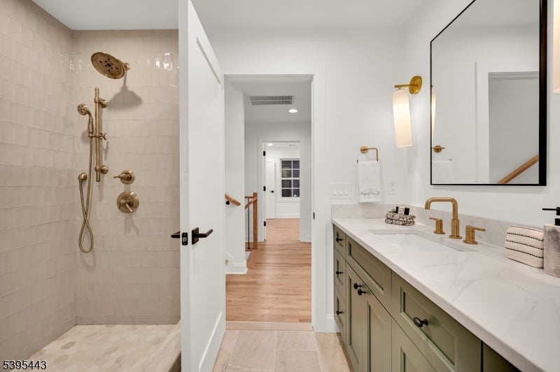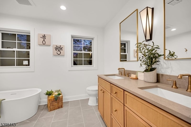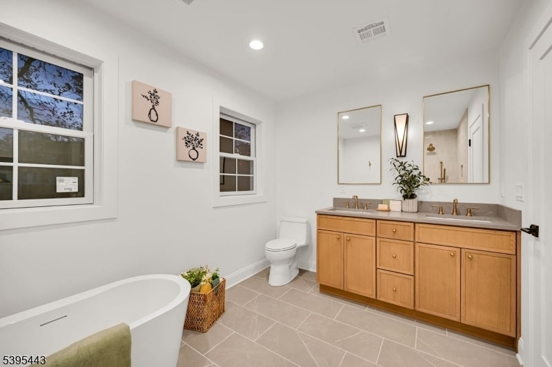 Welcome to this stunning, FULLY RENOVATED 4-bedroom, 3-bath home perfectly set on a FLAT LOT with a FENCED-IN backyard in the heart of Chatham. The main level features an inviting floor plan centered around a BRAND NEW KITCHEN with NEW APPLIANCES, custom cabinetry, quartz countertops, and sleek, modern fixtures. The spacious living and dining areas flow effortlessly together, ideal for both entertaining and everyday living. The entrance level features a cozy sitting room opening to a private patio and fenced backyard, perfect for relaxing or hosting gatherings, full bath and a convenient home office complete this floor. Upstairs, Three additional bedrooms share a beautifully updated hallway bath with dual sinks, Step up and a BRAND NEW second-floor addition unveils a luxurious primary suite with dual walk-in closets and a spa-inspired bath showcasing a soaking tub, glass-enclosed shower, and double vanity. The finished basement provides more space for recreation & storage. The home's exterior impresses with Hardie siding, Azek trim, NEW ROOF, and new aluminum gutters for enduring curb appeal. Nestled on a quiet street in one of Chatham's desirable neighborhoods, this home is just moments from top-rated schools, the Midtown Direct train to NYC, and downtown Chatham's charming shops, dining, parks, and recreation.