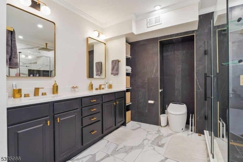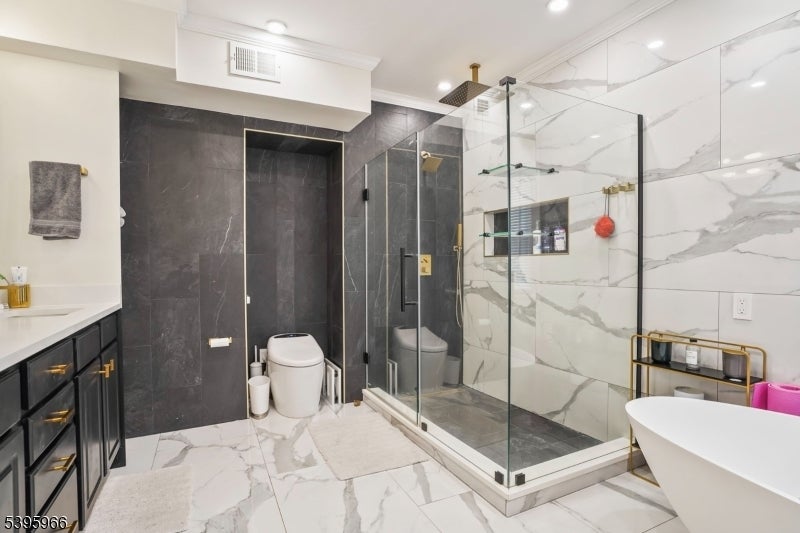 Welcome home to this beauty! Nestled in the coveted area of Bloomfield in Berkeley Heights Park, this grand 5-bedroom, 4.5-bath home blends timeless charm with modern luxury. Boasting coffered ceilings, stained glass accents, and a stunning primary suite featuring a custom-built closet with a rotating carousel, every detail impresses. Enjoy a bonus basement suite, dedicated office space, bonus sitting areas and ample storage, also equipped with a detached two-car garage. This location is ideal for commuting to NYC with close proximity to major highways and multiple train stations, it is also a stone?s throw from Montclair, a town known for it?s vibrant dining and shopping scene.