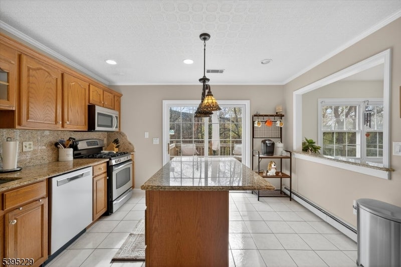 FANTASTIC BI-LEVEL. Welcoming 2,100SF home nestled in the picturesque neighborhood of The Meadows in Vernon offering 3Beds/3 Full Baths and plenty of room to grow. Sitting on 0.9 Acres of land with ample space for outdoor enjoyment, privacy and relaxation, the home's thoughtful upgrades provide peace of mind including a NEW roof (2020), NEW furnace and hot water heater (2023), NEW AC unit (2021), and a NEW deck (2019) making it move-in ready and worry-free. Kitchen has granite counters and center island with easy flow to DR or LR with high ceiling and lots of natural light. Beautiful HW floors throughout the LR, DR and hallway, paired with lux vinyl plank flooring in the primary bedroom with en-suite full bath and walk-in closet, providing a peaceful retreat after a long day. Expansive LL offers a versatile rec room with a cozy wood-burning fireplace, full bath, and walkout to the spacious backyard - partially fenced, offering a safe space for pets to play. This home is ideally located just minutes away from year-round fun and recreation. Whether you're into skiing, snowBOArding, or water activities at Mountain Creek, golfing/relaxing at Minerals or Crystal Springs, hiking trails, horseback riding, or seasonal attractions at Heaven Hill Farm, Pennings, local wineries/breweries, there's something for everyone. And, the charming town of Warwick is nearby for a variety of dining, shopping, and entertainment. Don't miss the opportunity to make this lovely home yours!