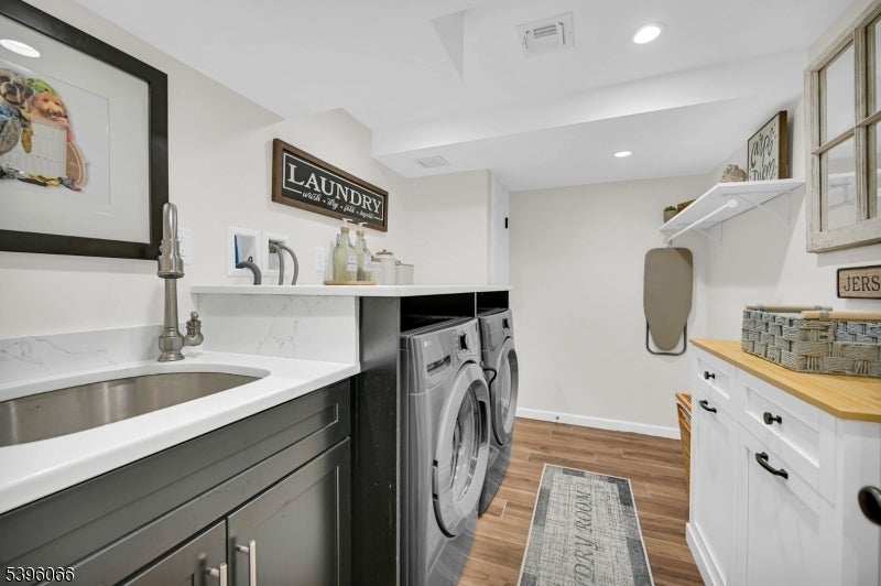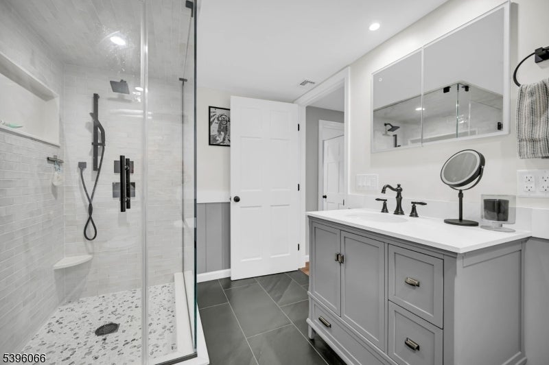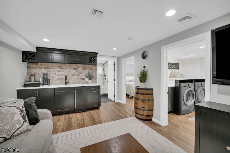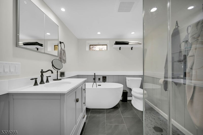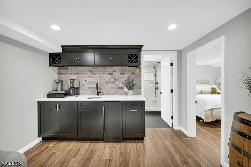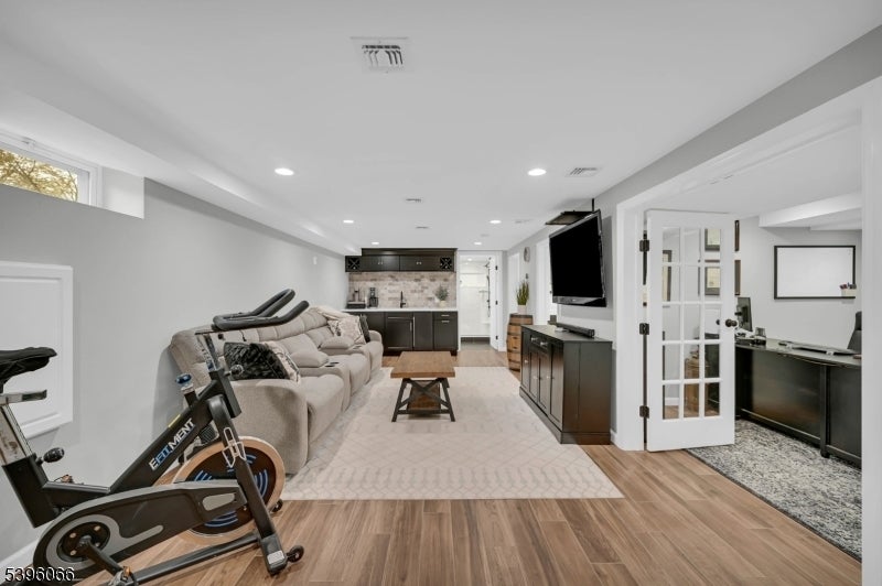 Location, location, location! You won't want to miss this beautiful ranch situated in the desirable Sedgefield section of Parsippany! This beautifully maintained 2 bedroom, 2 bath home blends comfort, character and modern updates. Kitchen boasts SS appliances, ample cabinetry,granite counters and flows seamlessly into the separate dining room. The spacious living room opens from the dining area with recessed lighting and has hardwood flooring throughout main level. Brand new lower level offers incredible versatility featuring a family room, separate office with french doors, laundry room with storage and a wet bar complete with a built in fridge, wine rack and extra cabinetry. An additional bonus room and a luxurious new full bath with a stall shower and soaking tub is the perfect guest retreat or additional living space. Key features include tankless water heater, new fence, custom window treatments, built ins for primary closet and more!! Step outside to a porch off the kitchen leading to a patio overlooking a beautifully landscaped, level lot with trees lining the fenced in yard and a large storage shed. Set on a quiet street close to major highways, shops and restaurants. Nothing to do but move right in!
