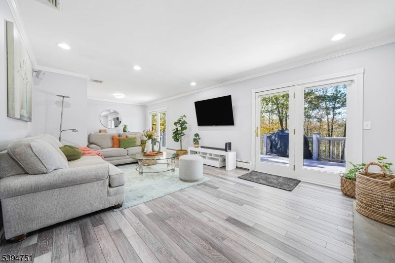 Spacious three-bedroom, two-bath ranch with walkout basement in a private lake community! This charming home is bigger than it looks and offers an open floor plan with updated floors and fresh paint throughout. The bright living room features a cozy fireplace, perfect for relaxing or entertaining. The primary bedroom has a private bath and a walkout to the deck, providing the perfect spot to enjoy peaceful mornings or quiet evenings. The walkout basement offers even more living space with a family room, laundry room, two versatile bonus rooms, and plenty of storage. Additional features include an attached garage and a large driveway with ample parking. Located in a beautiful private lake community, this home offers comfort, space, and convenience just minutes from major highways and about one hour from New York City. A true move-in-ready gem that combines tranquility and accessibility!