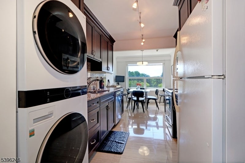 One to see - Renovated 2 bed,2-bath boasts modern upgrades -Galley kitchen features rich, dark wood cabinetry, light granite countertops with a matching backsplash. Sleek stainless-steel appliances. Double stainless-steel sink with a modern pull-down faucet adds style. A Light tile flooring and track lighting create a bright, airy feel, flowing seamlessly into the adjacent living area. An expansive living room offers comfort and elegance with striking parquet wood flooring in a geometric pattern and crown molding. Its generous layout accommodates large furniture. Master bathroom features modern finishes, tan-toned tiles with a spacious frameless glass-enclosed shower with floor-to-ceiling tiling, a mosaic accent band, built-in niche, and grab bar. A white vanity with integrated sink is contrasted by a dark wood-framed mirror with sleek lighting. Second bath offers a spa-like experience with spacious walk-in shower enclosed with elegant frameless glass and adorned with large, light-toned tiles. Designed for accessibility, is featuring a zero-entry threshold, a fixed rainfall showerhead, and a handheld spray fixture. Built-in niche and grab bar add convenience. High-quality, light-colored tiling creates an upscale feel, of a serene and functional retreat. Storage bin on unit floor. 24/7 concierges, maintenance and porter service and valet parking. Olympic-size heated pool. Spacious BBQ grill picnic area. Life Fitness center with sauna & showers.