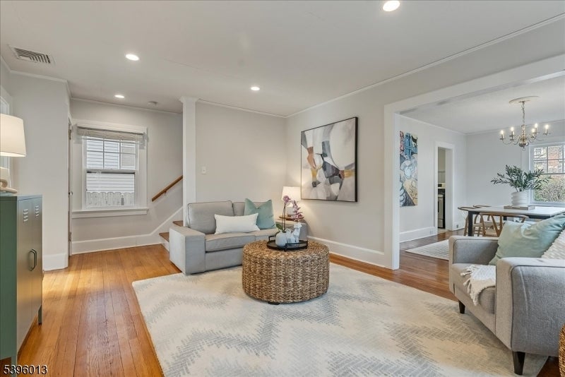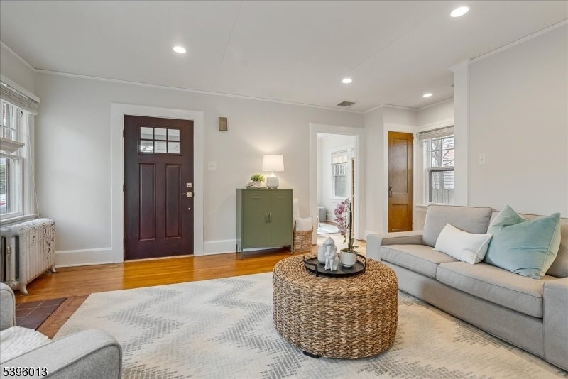 Just when you were about to give up hope, you found it! Tucked away on a cozy, tree-lined, dead end street, just one block from the NYC train and Upper Montclair Village restaurants and shops, this move-in ready home will delight you! Surprisingly spacious inside, the theme here is sunny and just right. The large, enclosed Porch is both welcoming and organizing. The large Living Room, with cozy brick fireplace, is inviting, flowing easily to the adjoining Office/Playroom and extra large formal Dining Room. The vintage Kitchen, with brand new refrigerator and stainless steel appliances, is cheery and bright, with easy access to the Backyard. First floor Powder room completes the picture. Upstairs, ranged off the ample landing, are three comfortable Bedrooms including the Primary with custom built-ins, and an updated Full Bath. Thoughtful touches, like Central Air, new Pella windows upstairs, new hot water heater, hardwood floors and fresh paint, will make your move easy. The attic and full Basement offer plenty of storage. Outside, the garden invites cozy firepit nights and summer barbecues. One car garage and parking for two more in the driveway. And, whether you're up for dinner and a movie, a run in the park or a quick train ride into NYC, it's all right there - best location in town! Start the New Year in your new home!