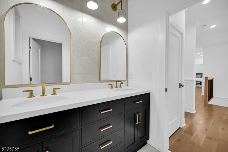 Welcome to this stunning & beautifully finished NEW CONSTRUCTION home feat. 2-story grand foyer, 6 bedrooms, 5 full baths & 2 half baths on 0.39 acre lot with a CIRCULAR DRIVEWAY & FENCED-IN yard offering the perfect balance of sophistication, functionality & thoughtful design inside & out. The gourmet kitchen showcases high-end appliances, designer finishes, elegant Kohler fixtures, custom trim work & a walk-in pantry, all complemented by 6 natural WHITE OAK HARDWOOD floors throughout. The spacious sitting room w/ Built-In Speakers & Receiver, formal dining room & living room provide the ideal setting for entertaining. Upstairs, the luxurious primary suite features a walk-in closet, spa-like bath & private balcony, a tranquil retreat for morning coffee or evening stargazing. The fully finished basement incl. a surround sound system & wet bar area, perfect for hosting gatherings. Modern comforts abound, including a whole-house water filtration system, 3-zone HVAC, designer outlets & switches with integrated USB ports, smart-home capabilities & hardwired security cameras for peace of mind. Strategically placed WiFi access points ensure seamless connectivity indoors & out. Step outside to a beautifully landscaped yard w/ an irrigation system & expansive private deck w/ a built-in gas line for grilling. Additional highlights include generator-ready wiring, impressive curb appeal, and enhanced smart-home features combining convenience, security, and modern living at every turn.