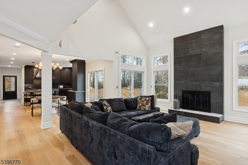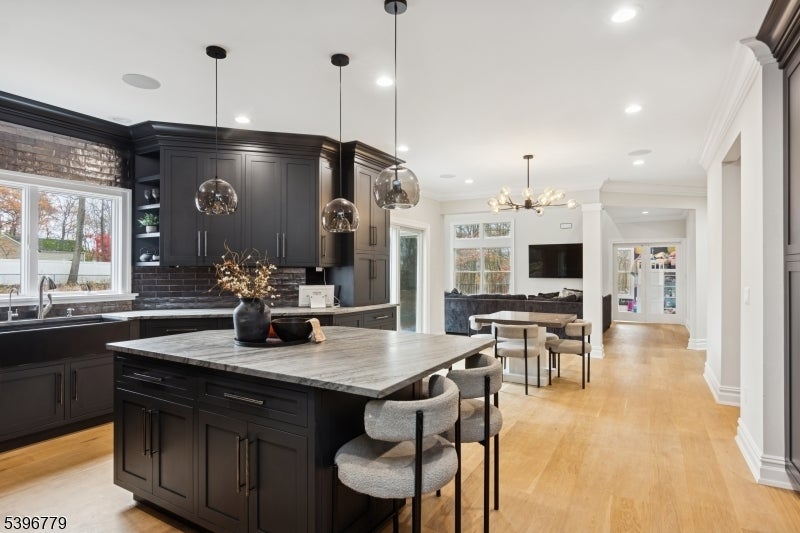 Welcome to 24 Denise Drive, an elegant custom colonial nestled in the prestigious Saw Mill Estates of Kinnelon. Set on a beautifully landscaped 1.39 acre lot offering privacy and serenity, this meticulously updated residence blends timeless architecture with sophisticated modern design. A stunning high-end kitchen anchors the heart of the home, showcasing custom cabinetry, designer lighting and professional-grade stainless appliances. The open-concept layout flows effortlessly into a sun-filled breakfast area and a spacious family room with a gas fireplace, perfect for entertaining or everyday living. Rich new flooring extends throughout the main level, upstairs hall, and primary suite adding warmth and refinement. The first floor also features a formal living, dining room with gas fireplace, a private home office and an elegant powder room. Upstairs the primary suite is a serene retreat with spa-inspired bath, generous walk-in closets and tranquil sitting area. Three additional bedrooms and two well-appointed baths complete the upper level. The expansive backyard awaits a future pool oasis. Additional highlights include full basement with high ceilings, custom millwork and a 3-car garage. Tucked in the scenic hills of northern Morris County, Kinnelon is celebrated for its estate-style homes, top-rated schools and natural beauty. Just 35 miles from Manhattan, it offers refined suburban living surrounded by lakes, parks and a welcoming sense of community.