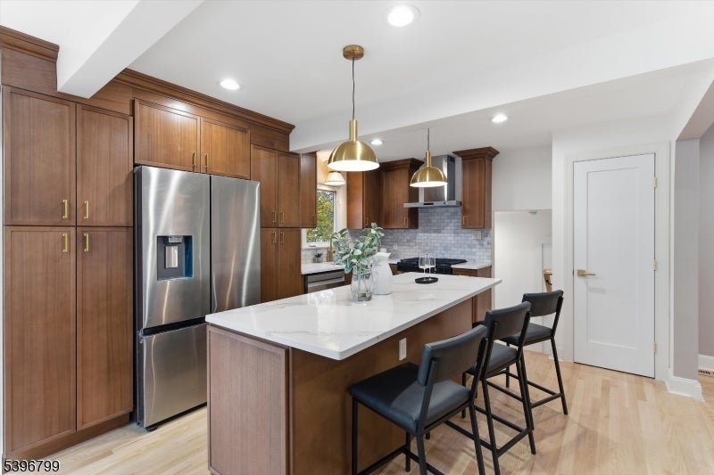 Completely reimagined from top to bottom, this oversized Cape offers a blend of modern design & architectural balance. Step into the slate-tile foyer, where your eye is immediately drawn straight through the home to the sliding glass doors just beyond the kitchen. The main living area feels open and airy while keeping each rooms sense of purpose and natural flow. At the heart of the home sits a chef's kitchen that combines style and function with top-tier appliances, wine fridge, built-in microwave, & breakfast nook overlooking the Trex deck & fenced backyard. Two bedrooms with custom closets, a full bath, & a convenient laundry room complete the main level. The partially finished walk-out basement expands the living space even further, featuring a full bath & direct outdoor access. Upstairs, the primary suite is a showpiece in itself, offering 4 closets, with a custom closet/walk-in dressing area, a spa-inspired en suite with a soaking tub & stall shower. Every major component has been renewed, giving you assurance of a full renovation paired with the warmth & charm of a timeless home. Down the street from Liberty Middle & just 1 mile from Crestmont Country Club, this home offering a highly desirable setting. NJ Transit Bus #71 to NYC is right at the corner, walking distance to Mt. Pleasant Elem. & local houses of worship. 30-minute drive to NYC, or take the West Orange jitney located just 1 mile away, which connects to the train and gets you into Manhattan in under an hour.