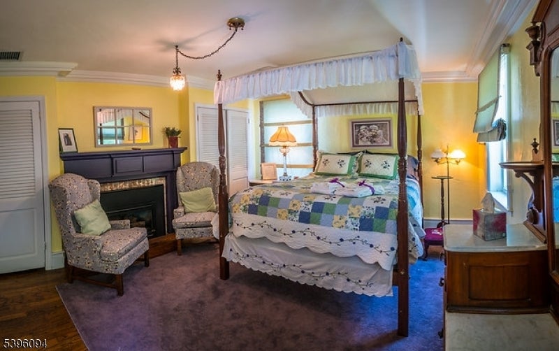 There are properties with notable history, and Fox and Bear Lodge is one of them. Built in 1831 and restored in 2022, this property brings together historic elements and updated interior features. Set on nearly two acres with rolling terrain, mountain views, and a bordering stream, the site offers a natural setting within Vernon Township. Inside, more than four thousand square feet of interior space extend across three levels. Each of the eight bedrooms includes a private bath, providing individual room layouts that support a variety of residential or lodging uses in accordance with local zoning. The main level contains wood finishes, multiple gathering areas, and a clear connection between the kitchen, dining, and living spaces. Recent updates include refinished floors and modernized systems throughout the home. The layout offers multiple configuration options. The corner lot provides parking areas, open grounds, and access to the stream located along one side of the property. Fox and Bear Lodge is a historic structure with updated interior features and a substantial footprint suitable for a range of uses permitted by the municipality.