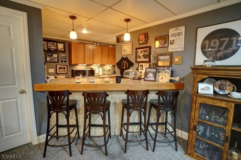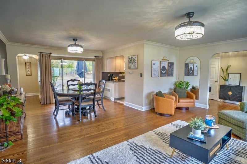 Welcome to this beautifully maintained, light-filled expanded ranch in the heart of Riverdale, offering both residential comfort and potential commercial use. This 3-bedroom, 2.5-bath home features an inviting open floor plan that flows seamlessly from the spacious family room to the dining area and kitchen. The family and dining rooms boast gleaming hardwood floors, a cozy gas fireplace, and convenient electric window shades. All bedrooms are generously sized with abundant closet space and hardwood floors beneath the carpeting. The primary suite includes a full ensuite bath with a shower-over-tub, while a second bedroom features a private half bath. The kitchen offers ample cabinetry, a newer gas range and refrigerator, and plenty of workspace. The fully finished basement expands the living space with a large family room, a full wet bar, a bonus room or home office, laundry area, and extra storage. Step outside to your private backyard oasis, perfect for entertaining, with a sparkling saltwater pool, cabana, and spacious patio. An oversized two-car carport with lofted storage and ample additional parking complete this exceptional property. Whether you're looking for a comfortable home, a live/work opportunity, or a place designed for entertaining, this Riverdale gem delivers it all.