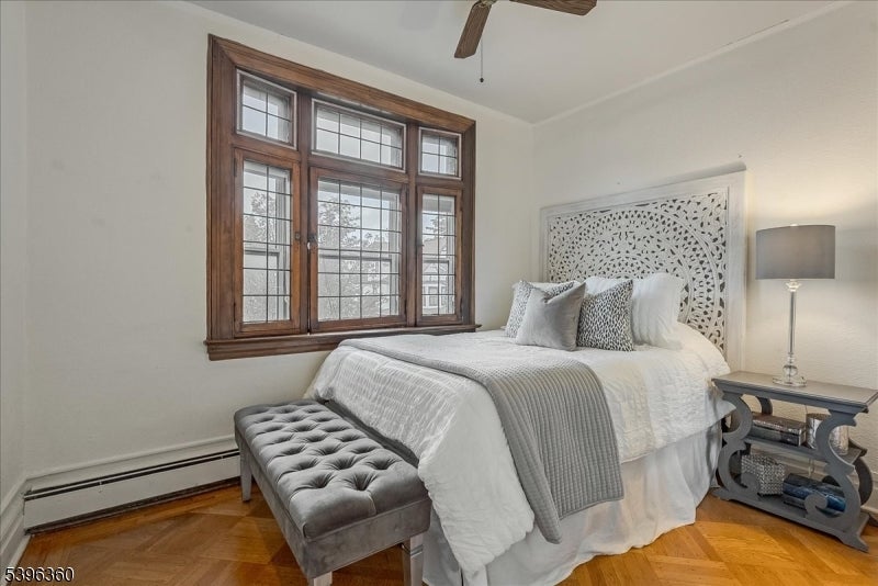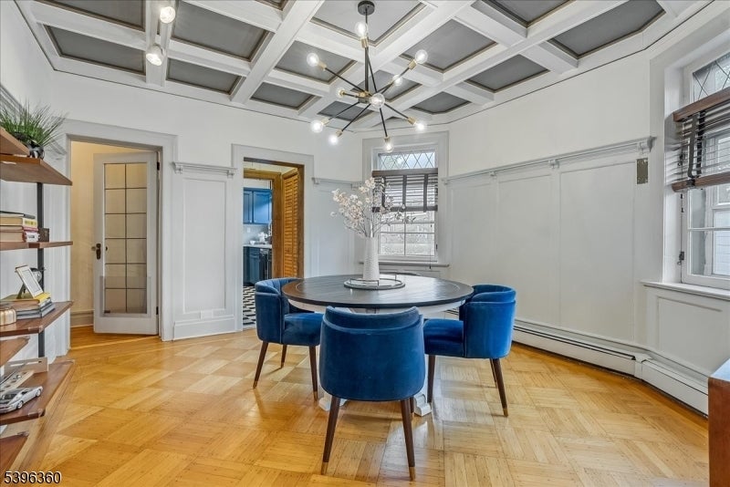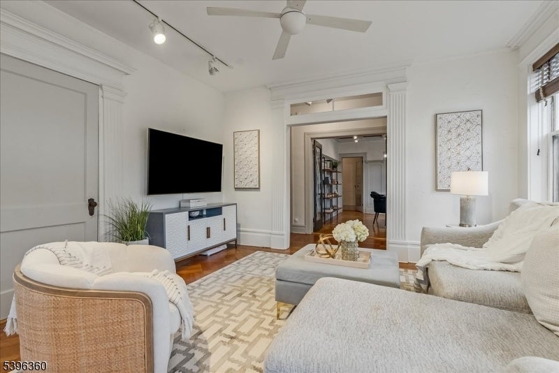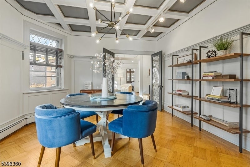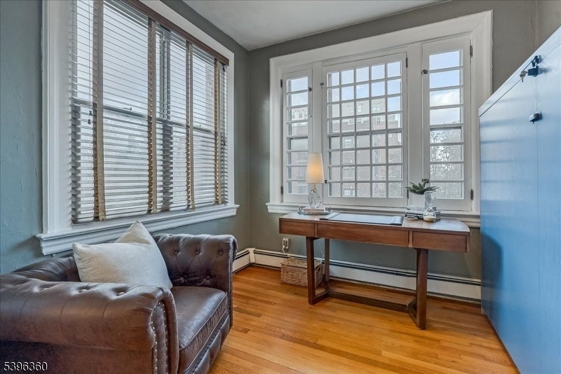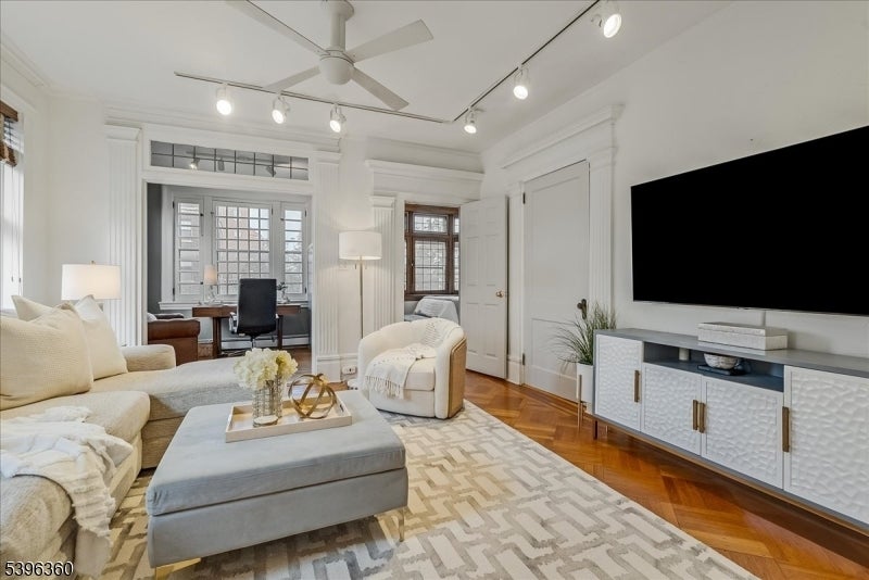 Right in the heart of vibrant Downtown Montclair, this dreamy two-Bedroom plus Office will blow you away! Bright and spacious, this 2d floor unit is gorgeously updated, with loads of character. With the largest floorplan in the building, the first thing you'll notice, as you come in the dedicated entry hall with coat closet, are the high ceilings, large leaded glass windows and beautiful parquet wood floors. The sun-drenched Living Room is perfect for entertaining or a cozy night in. Leaded glass transoms frame the entry to the window-lined adjoining Office. Leaded glass French doors lead to the Dining Room, which is big enough for your largest gathering, with box-beam ceiling and gorgeously restored wainscoting. The Butler's Pantry and Kitchen have a distinctly European feel, with floor to ceiling, restored and painted, solid-wood and glass cabinetry, updated appliances and plenty of counterspace. The two comfortable Bedrooms are at opposite ends of the apartment, reached by a lovely, curved Hallway with additional closets. The freshly updated Full Bath is a perfect blend of modern luxury and period character. With a deeded parking spot, storage unit and Laundry downstairs and the restaurants, shops and galleries of Downtown Montclair literally around the corner, this is the best Holiday gift you can give yourself!