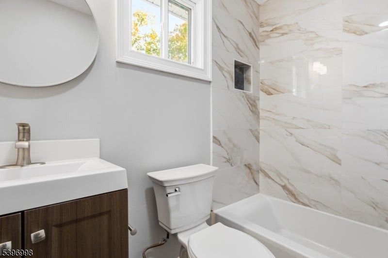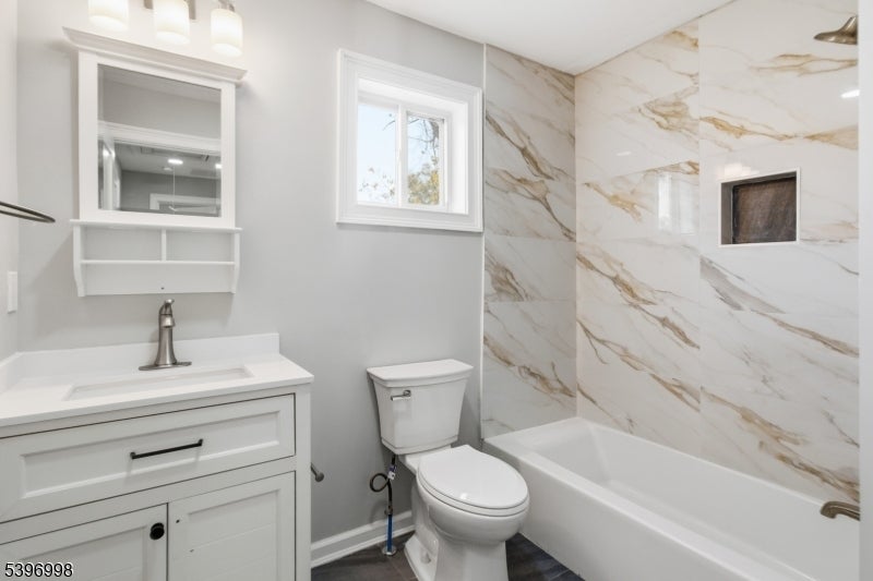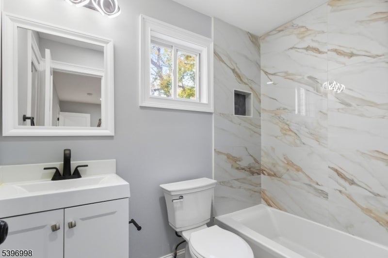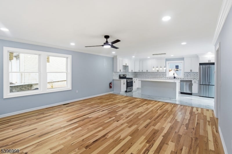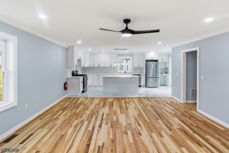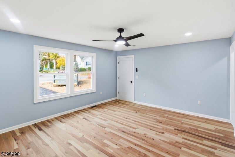 Welcome to 130 Flemington Dr in Parsippany, a completely rebuilt home offering 4 bedrooms, 4 full bathrooms, a fully finished basement with 9-foot ceilings, and modern finishes throughout. The first floor features an open-concept layout that connects the living room, dining area, and a beautifully designed kitchen with 36-inch cabinets, a large island, and stainless steel appliances, plus a bedroom and full bath that provides added convenience and versatility. From the kitchen, step out onto a deck that leads to a private backyard ideal for outdoor gatherings. Upstairs, you'll find two spacious suites with private bathrooms, two additional bedrooms, and a shared full bath, all featuring hardwood floors, recessed lighting, and ceiling fans. The finished basement includes an oversized bonus room, an additional full bathroom, and a large open area suitable for a variety of uses such as recreation, workspace, or fitness. The exterior offers new siding, roof, windows, updated plumbing, electric, HVAC, and a freshly paved driveway with room for multiple vehicles. Located on a quiet street with easy access to highways, schools, and shopping. Don't miss your chance to own a beautifully rebuilt home with exceptional modern features throughout.