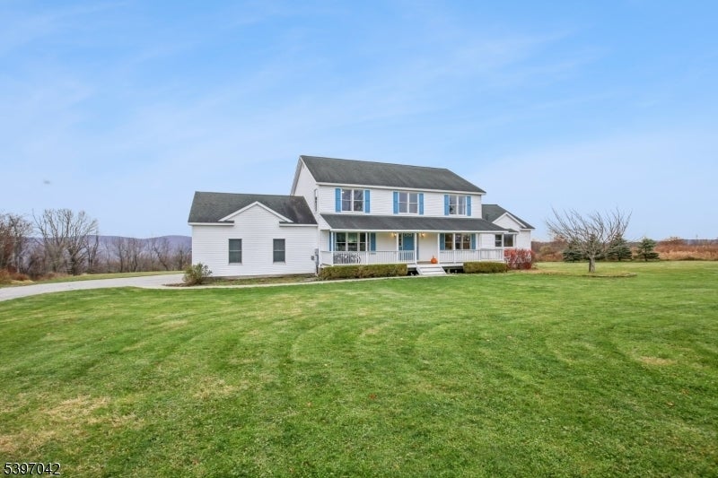 Welcome Home! This beautiful colonial sits on just under 3 acres, offering 4 bedrooms and 2.5 baths with incredible space, comfort, and scenic views. Built with 2x6 modular construction, this home provides excellent insulation and impressively low utility costs.The main level features an open floor plan with hardwood floors, a bright kitchen with huge counter space, double ovens, and ample cabinetry, flowing into the dining room and newly finished great room with high ceilings, custom built-ins, vinyl plank flooring, and an electric fireplace. Additional rooms include a family room, office, and a spacious laundry/mud room with two closets and storage.Upstairs, the primary suite offers a walk-in closet, jacuzzi tub, oversized shower, and double vanity. Three additional bedrooms complete the level, with all hardwood flooring.The walk-out basement features a custom bar, surround sound, large storage room, and an additional framed room and bathroom already prepped for finishing.Outdoor living shines with a large back deck, lower patio, 30x35 garden, fish pond, big open yard with a sledding hill and playhouse, plus spectacular sunrises, sunsets, and night sky views.Extras include fully paid-off solar panels (rear roof), baseboard heating, an oversized 2-car garage, recently cleaned septic, and a serviced furnace.Minutes to High Point State Park, downtown Sussex, parks, hiking, and easy access to NY & PA.