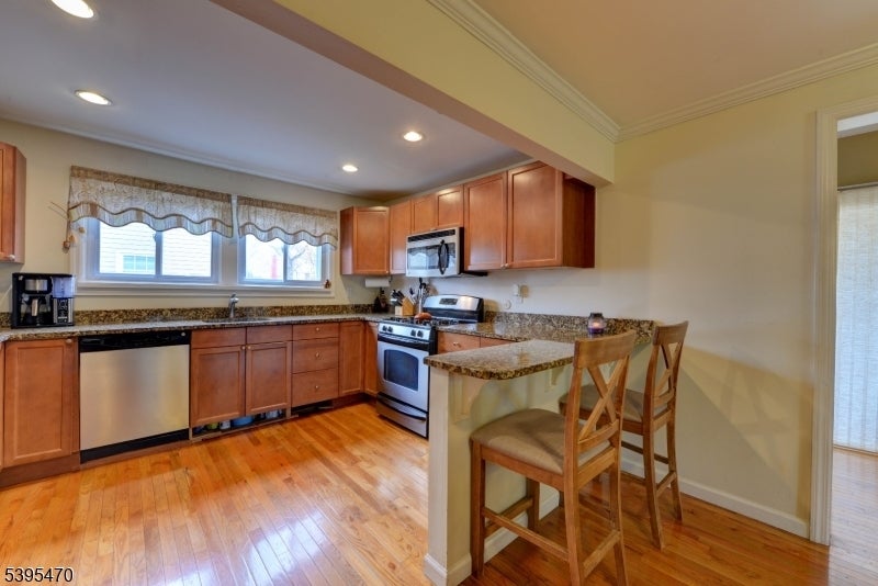 Welcome home to this beautifully maintained 5 bedroom, 3 bath Colonial located on a peaceful street just minutes from major highways, shopping, dining and public transportation. The spacious first floor features a bright living room, formal dining room, and a large kitchen with plenty of cabinet and granite counter space; perfect for everyday living and entertaining. A first floor bedroom and full bath provide added convenience ideal for guests. Upstairs you'll find four generous bedrooms, including a primary with its own en-suite bath and walk-in closet. Enjoy the outdoors with a slider leading to a deck and private backyard. This property is located in non-flood section. Don't miss this opportunity to own a spacious, well cared for home in a prime location.