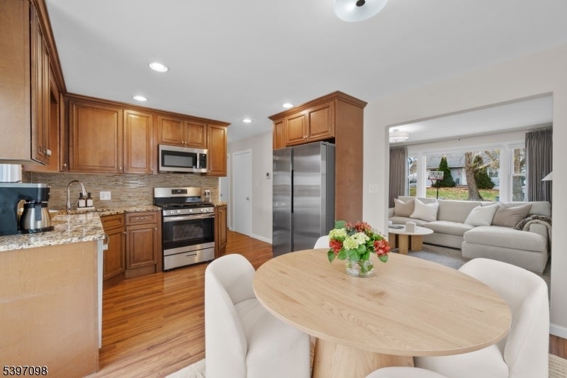 Beautifully renovated 4 bedroom, 1 bath single-family home located on a quiet, tree-lined street in Bloomfield's most desirable Brookdale neighborhood. Step inside to discover a bright, open layout featuring pristine hardwood floors and all new sheetrock giving the interior a clean, contemporary feel. The home offers a brand-new HVAC system with ductless split units upstairs and a new furnace ensuring year round comfort. A completely new electrical system, modern light fixtures, and remote controlled blinds in nearly every room add convenience and style. Enjoy a modern kitchen with dining area, an updated bathroom with sleek finishes, all new doors both inside and outside and laundry area in basement with new appliances,. The home's curb appeal shines with a new driveway and front walkway. A fantastic deck off the kitchen plus a large backyard offers plenty of space for entertaining while the unfinished basement offers incredible potential for additional living space. Conveniently located near Grove Street Station, Bloomfield Center, and Brookdale Park, this stunning home combines modern comfort, timeless charm, and unbeatable location.