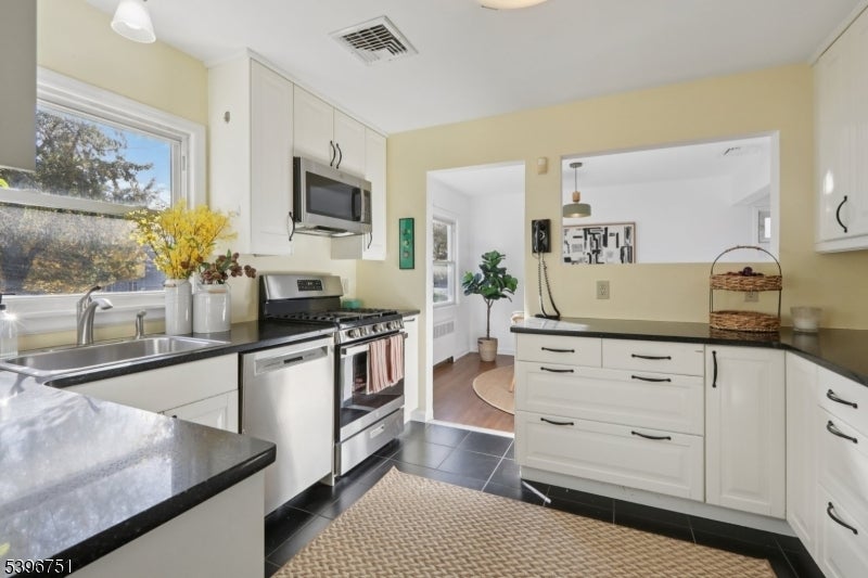 Welcome to this gorgeous Colonial, where timeless design meets modern comfort. Brimming with curb appeal, this impeccably maintained home offers a warm and inviting atmosphere throughout. Newly finished hardwood floors, a 3-year-old roof, 2-zone central air, and thoughtful updates make it truly move-in ready. The first floor features a bright, sun-filled living room, a formal dining room, and a well-appointed kitchen with a new stove, new microwave, and stainless steel appliances, plus a convenient half bathroom. Upstairs, you?ll find three spacious bedrooms, a refreshed full bathroom, and pull-down stairs leading to the attic for extra storage. The finished basement provides plentiful entertainment space along with a dedicated laundry area complete with a slop sink. Outside, the deep property runs from one street to the next and offers a fully fenced-in yard accessed directly from the side door, perfect for pets, play, or outdoor gatherings. You?ll also enjoy a 6.375kW solar system in direct sun providing 90% of the home?s electricity, plenty of driveway parking, a garden area for planting, and a brand-new storage shed. Located in one of Nutley?s most desirable and walkable neighborhoods, you?ll be just moments from top-rated schools, beautiful parks, NYC transit, and a convenient shopping center featuring Target and more. A truly exceptional opportunity to enjoy comfort, efficiency, and an unbeatable location.