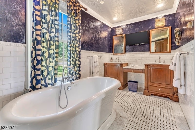 Welcome to an unparalleled luxury experience on S Mountain Ave in Montclair, one of New Jersey's premier locations and renowned as one of the best New Jersey suburbs outside of NYC. This stunning residence with a Spanish Art Deco influence offers six bedrooms, four full bathrooms, and two half baths, embodying the epitome of sophisticated living. Located within walking distance to Montclair's prime dining and entertainment district, this home boasts style and convenience along with a NYC skyline view from the primary bedroom. This meticulously maintained home spans three levels of living space, complemented by a basement ideal for storage. The fully upgraded kitchen featuring 3 ovens and 2 dishwashers, and bathrooms that showcase the highest quality finishes including radiant heating in the primary bedroom ensuite, ensuring a modern and luxurious lifestyle. The cobblestone paver driveway leads to a two-car garage equipped with 2 EV chargers and attic storage, providing ample space for all your needs. Resort-style outdoor amenities enhance the property's appeal, including a spacious patio off the kitchen and a heated salt water pool. The pool house, equipped with a half bath and separate shower, offers an additional layer of convenience and luxury. The combination of its architectural elegance, premium upgrades, and proximity to both local attractions and NYC makes this home a rare find.