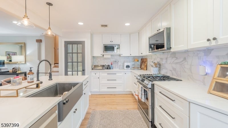 Beautifully Renovated Split-Level on Quiet West Orange Cul-de-Sac!This updated 4-bedroom, 2.5-bath split-level offers modern living in a prime location. Fully renovated in 2021 with new garage, windows, HVAC, and hardwood floors throughout, plus a new roof and fenced yard in 2024. Recent upgrades within the past year include oil tank removal, full garage waterproofing, and complete exterior repainting and sealing.The open-concept main level features a stylish eat-in kitchen with white quartz counters, a bright dining area, and a spacious living room. A dedicated home office provides ease for remote work, while the finished lower level offers flexible space for recreation or additional living. The newly designed backyard creates a private retreat perfect for relaxing or entertaining. Located just steps from NYC transportation and major highways, this move-in-ready home delivers comfort, style, and unbeatable convenience.