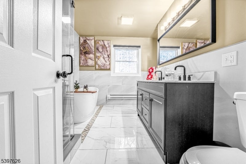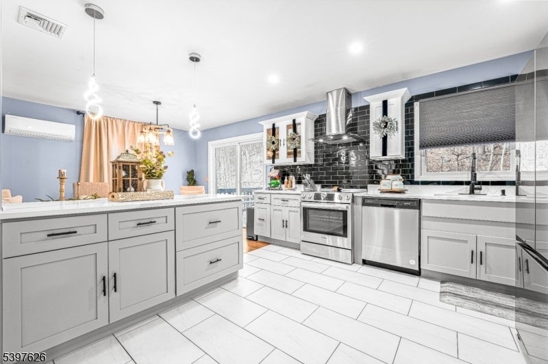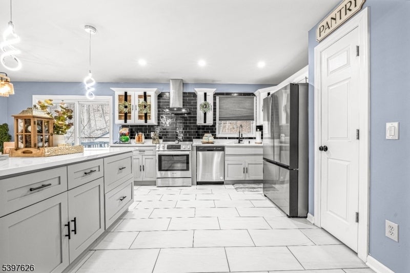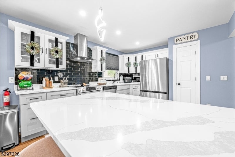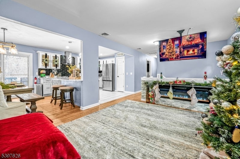 Tucked away on a quiet, secluded street, this beautifully renovated 3-bedroom, 2-bath home with en-suite bathroom blends modern luxury with everyday comfort. From the moment you arrive, you'll notice the impressive curb appeal new paver driveway, walkway, and patio, all accented with custom lighting. The backyard is an entertainer's dream featuring a built-in stone fire pit with seating and an expansive two-level deck.Step inside to a sun-filled open-concept kitchen, dining, and living area, anchored by a sleek linear fireplace surrounded by stunning stonework. The newly redesigned kitchen boasts a center island, brand-new cabinetry, granite countertops, and stainless steel appliances, with brand-new sliders that open directly to your outdoor living space.The exceptional main bathroom feels like a private spa, showcasing double sinks, a freestanding soaking tub, and a luxurious separate shower.The lower level offers a spacious family room complete with a wood-burning stove, ideal for cozy nights in. A beautifully renovated full bath features a waterfall rain-shower system, and the laundry area is conveniently located on the same level. Brand new septic tank has been installed !With a 2-car garage, modern upgrades throughout, and designer finishes in every corner, this home truly checks every box.