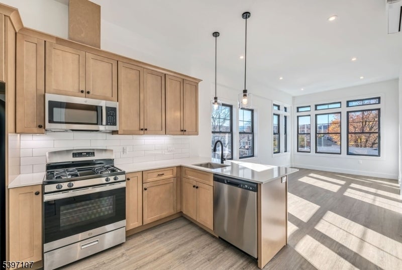 Modern 2nd Floor Apartment in newly constructed building. Wonderful open floor plan, all new stainless-steel appliances, stackable washer dryer in the unit. Light and bright. Many large windows in this corner apartment. Vinyl plank flooring throughout, 2 zone ductless split for hearting and cooling, assigned area for tenant parking.. Conveniently located to shopping, public transportation and major highways. Elevator for apartments, non smoking building.