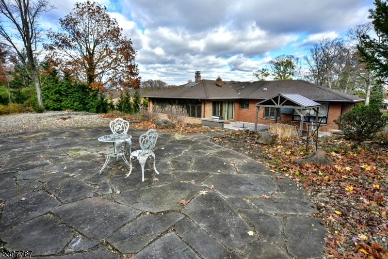 Welcome home to this beautifully crafted custom brick ranch. Step inside to a warm foyer with flagstone flooring and a spacious formal living and dining room with gleaming hardwood floors throughout. The maple gourmet eat-in-kitchen features newer stainless steel appliances with plenty of room for cooking and entertaining. Step into an impressive family room with custom cabinetry, granite countertops, gas fireplace, oak ceiling with skylight and abundant windows that frame wonderful backyard views and two sets of sliding glass doors that lead to a patio and deck. The main level offers two generous bedrooms, two full baths, formal living room, dining room and family room, kitchen and a convenient laundry area with built in Iron board. The primary suite includes a full bath and a large walk in closet. The fully finished lower level provides a large family room, game room, full bath, bonus room, office and utility room-perfect for extra living or work space. Lower level has walkout to garage. Outside,enjoy the private two-tiered backyard with a Cambridge paver patio, bluestone tiles, covered gazebo, gas grill, refrigerator, and granite countertop-ideal for entertaining. There is an oversized 2 car garage and 2 year old underground sprinkler system, 1 year old security system currently deactivated. This home will not disappoint. Come see for yourself.
