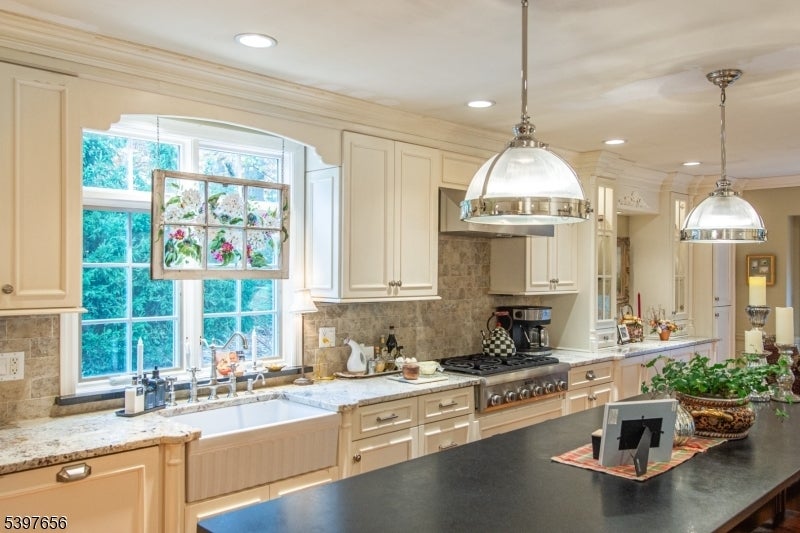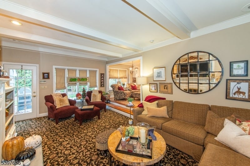 Meticulously maintained & highly sought-after ranch on one of Roseland?s best cul-de-sacs- complete w/ charming gas streetlights! This home features 3 bedrooms, 2.5 baths, 2-car garage, & full finished walkout basement. Enter through a spacious & bright foyer that opens into a large living room w/ a bay window, and HUGE eat-in kitchen equipped w/ stainless steel Thermador 6-burner cooktop, convection oven, conventional oven, & warming drawer; Thermador dishwasher plus an additional Fisher & Paykel dishwasher drawer; Marvel wine refrigerator; custom-paneled KitchenAid refrigerator; granite countertops; soapstone island; large farmhouse sink; generous dining area; and a breakfast room (currently used as a sitting room). From the kitchen, step down into a large family room w/ a wood-burning fireplace & patio door leading to the paver patio, along with a powder room & access to the 2-car garage w/ an attached kitchenette. The spacious primary bedroom offers double closets & an en-suite bath, accompanied by two additional bedrooms & a large, fully tiled main bathroom. The huge finished basement includes laminate flooring, a large walk-in cedar closet, an expansive laundry room, & a walkout storage room. Additional features include hardwood floors & crown molding throughout, custom woodwork & built-ins, newer roof &water heater. Set on a level ½-acre lot w/ an inviting front porch & side paver patio. No stone has been left unturned with this very special home.