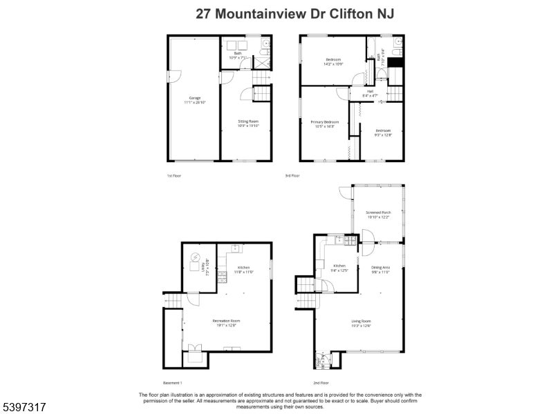 Welcome to 27 Mountain View Dr., a well-located split-level home offering space, versatility, and incredible NYC skyline views. The upper-level features 3 bedrooms and 1 bath, while the first floor includes an additional bedroom and full bath?ideal for flexible use. Hardwood floors extend throughout the home, and the full-height basement offers excellent expansion potential along with a summer kitchen, perfect for extended stays, entertaining, or supplemental prep and storage. An attached garage completes the layout. The home needs some TLC, making it a prime opportunity for buyers, renovators, or investors looking to create value in a sought-after Clifton location close to major highways, shopping, and transportation.