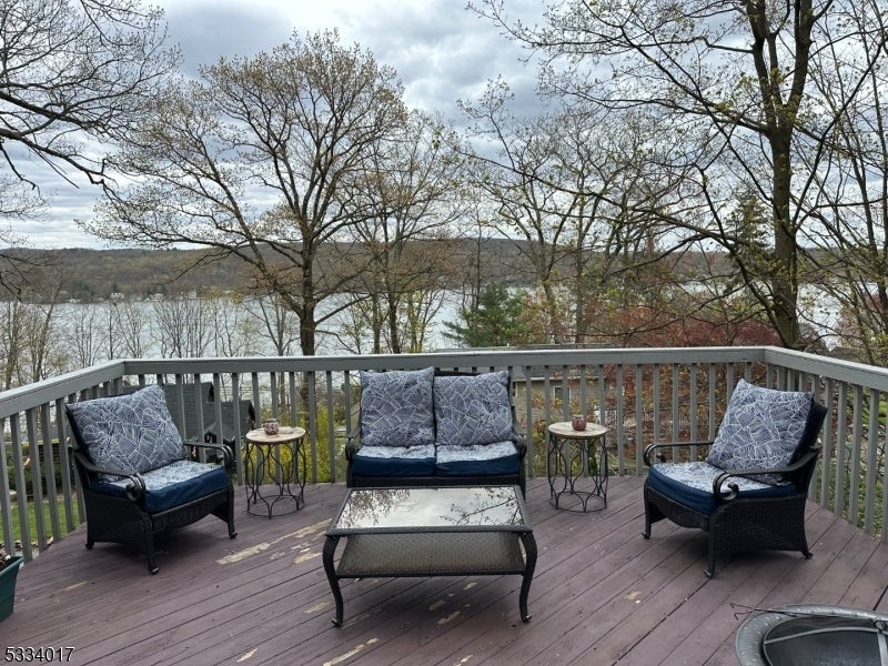 Lakeside community! TWO bedroom, large Master bedroom loft with a double closet, second bedroom with new floor and closet also, new kitchen countertop, sink, floor and newer oven and refrigerator, bathroom was updated 5 years ago and living room has some new windows, fireplace is two story high. NEW floors in the living room and the dining room, vaulted ceilings, New lighting, Bright with lots of windows, slate patio & large deck for entertaining during the warmer months, winter views of Greenwood lake are breathtaking. Basement for laundry and storage. Circle driveway also.
