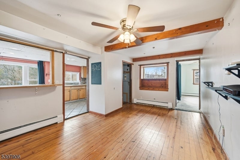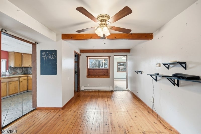 Cozy Ranch-Style Home with Cottage Kitchen, Bay Window & Lake Access. This inviting ranch-style home is ideal for first-time buyers or anyone seeking the ease of one-floor living. It offers 2 bedrooms, 1 full bathroom, and a bonus room that can serve as a home office, den, or guest space. The heart of the home is its cottage-inspired kitchen, showcasing a striking stone accent wall and a breakfast bar that creates a warm, welcoming space for meals and gatherings.A standout feature is the bay window overlooking the lake, filling the living area with natural light and offering serene views year-round.Step outside to enjoy the flat backyard with a spacious deck, perfect for entertaining, relaxing, or simply soaking up the outdoors.Blending classic ranch appeal with thoughtful updates, this property makes a wonderful starter home with room to grow.As part of the community, membership to Gordon Lakes in West Milford is required, providing access to beaches and docks a lifestyle perk that brings recreation and relaxation right to your doorstep.