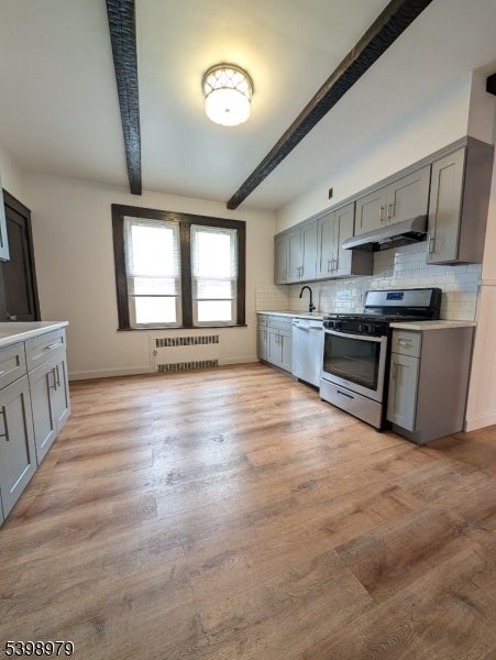 1st Floor spacious and recently updated 3-bedroom apartment offering classic charm blended with modern upgrades. This bright and inviting home features gorgeous natural hardwood floors throughout the living areas and bedrooms, freshly painted walls, and abundant natural light.The updated kitchen is a standout, showcasing sleek gray shaker cabinets, stainless steel appliances, subway tile backsplash, and ample counter space along with a great sized Pantry. Exposed ceiling beams add a unique architectural touch, while the expansive layout provides plenty of room for dining and gathering.The modern bathroom has been stylishly updated with large contemporary tile, a new vanity, upgraded lighting, and a clean, modern design.All three bedrooms offer excellent space, ceiling fans, and great closet storage. Additional features include beautiful wood trim & high ceilings.Enjoy the added convenience of laundry in the basement as well as off street parking for 1 car, making daily living even more comfortable and efficient.Located in a convenient section of Bloomfield near shopping, dining, parks, transportation, and major highways this unit delivers both comfort and convenience.