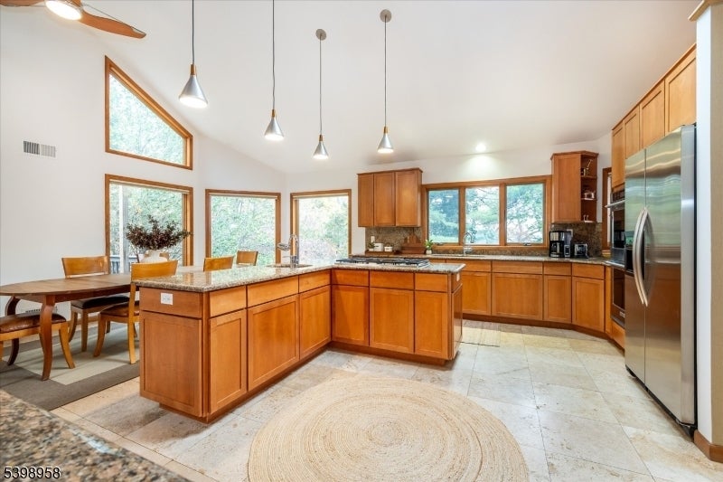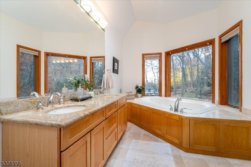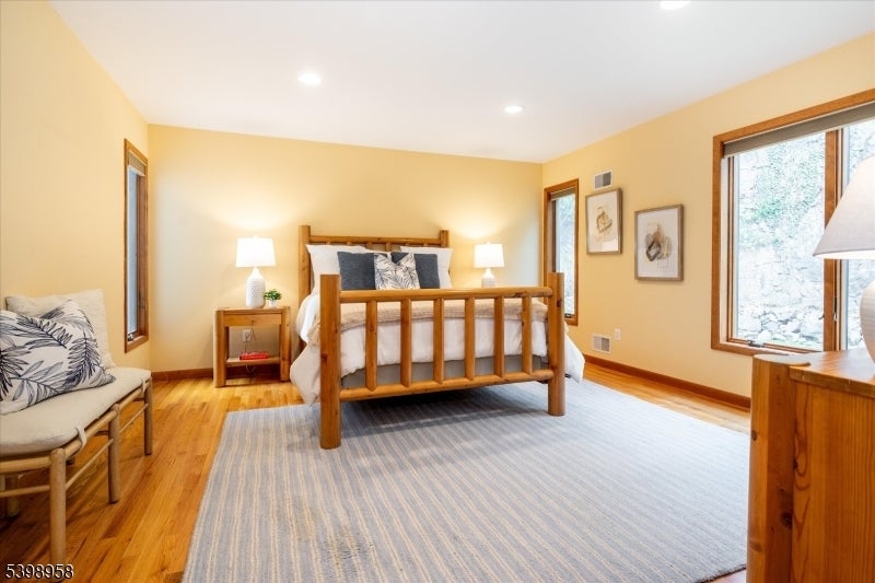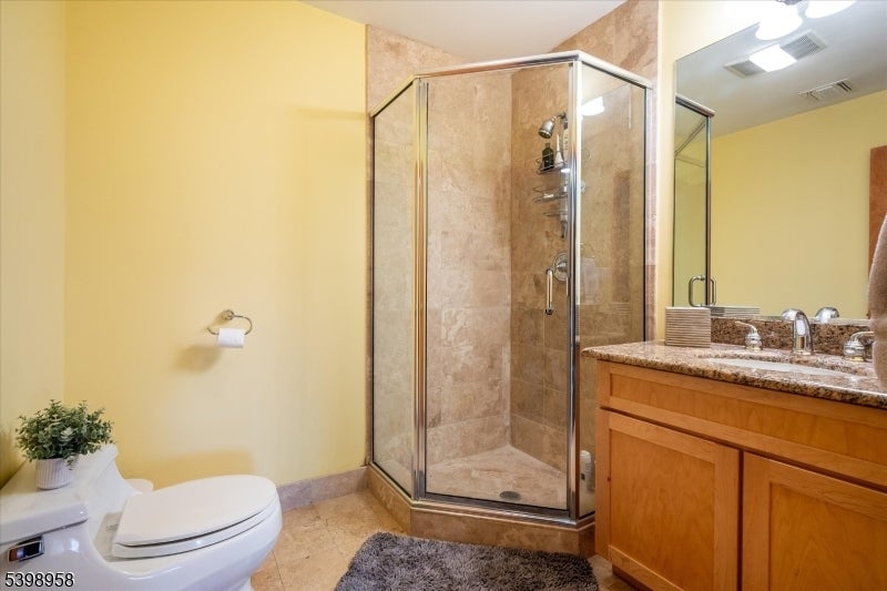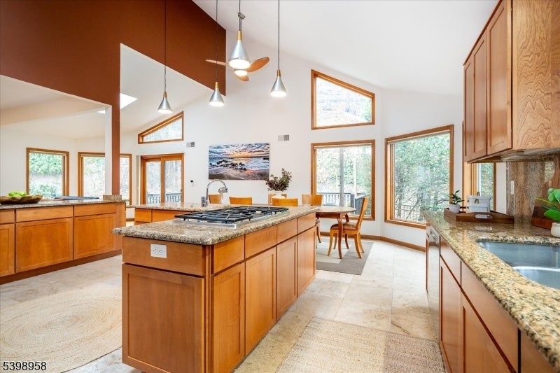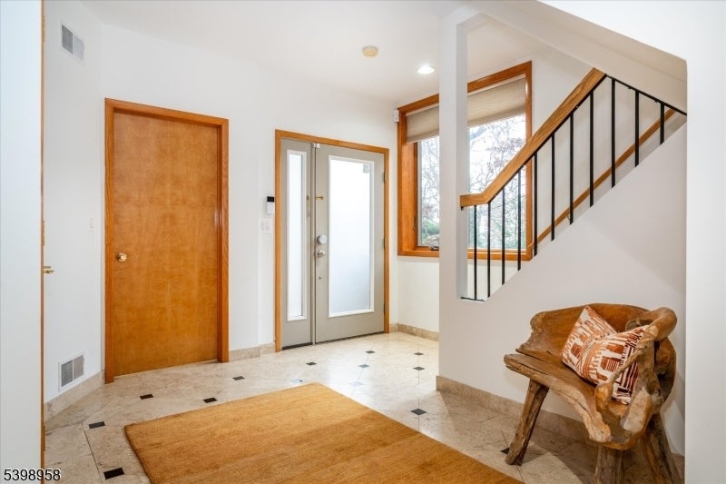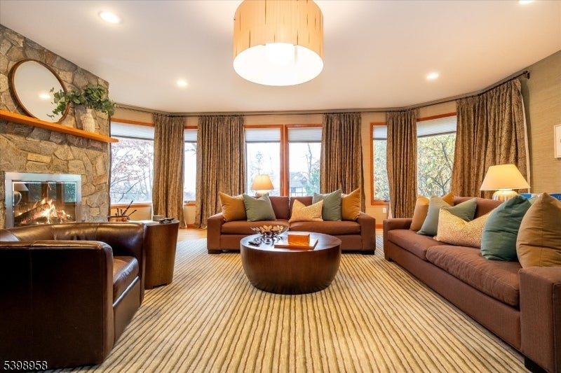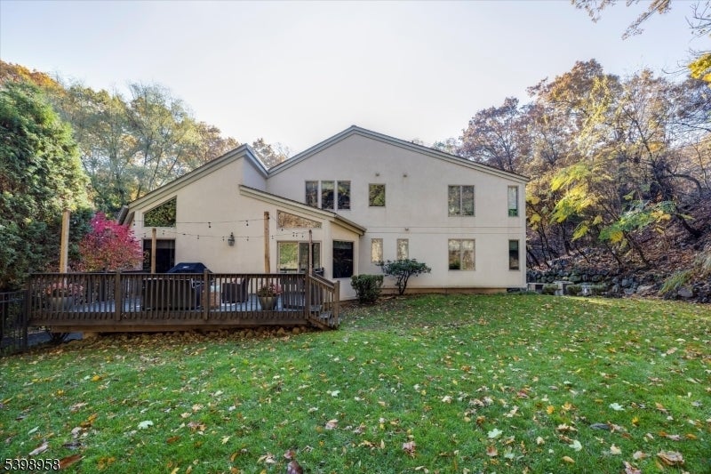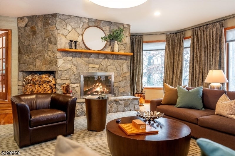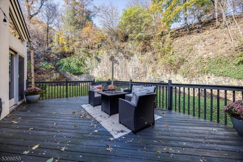 Don't miss this special contemporary home offering seasonal NYC views set on a secluded, private lot so close to vibrant Upper Montclair Village. Oversized windows and several skylights flood the home with natural light. The ground floor offers versatile living space with large rec room or guest suite with fireplace, full bath, gym, laundry and garage access. 1st floor offers an open floor plan with eat-in kitchen and family room leading out to an outdoor deck, incredible for entertaining or just relaxing with family; a formal dining room, large living room with stone fireplace and outdoor another deck, powder room, bedroom with ensuite bath. 2nd floor has 2 bedrooms, hall bath and the primary suite featuring a bath with double sinks, a spa-like tub, shower, make up counter, 2 walk-in closets and a gas-fireplace. Additionally, on the 3rd floor you'll find an office or den plus storage. Some notable updates and features include a high ceilings, whole house generator, roof and skylights replaced in 2019 , 3 zone central air, sprinkler system, dumb waiter from kitchen to garage and laundry chute. Close to Upper Montclair Village with restaurants, movie theatre, shops, supermarkets and NYC direct train.