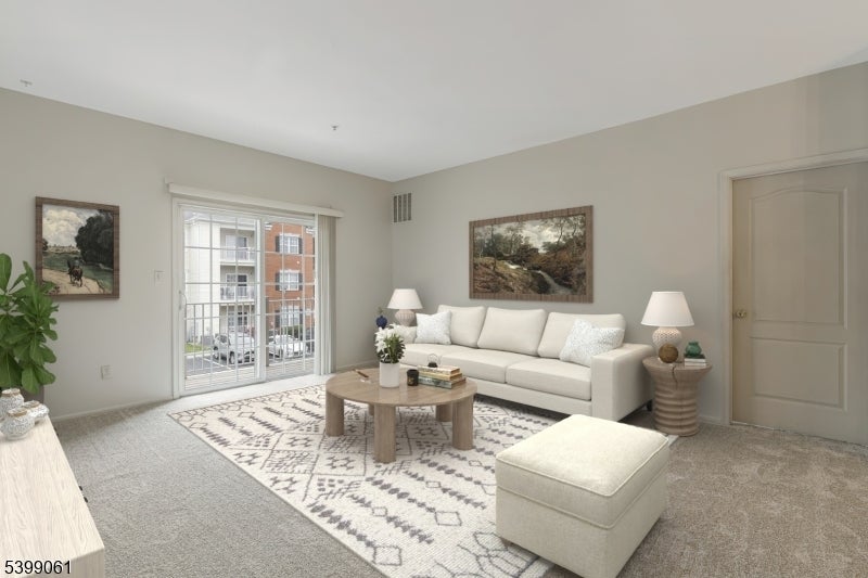 Welcome to this fabulous second-level condo located in the highly sought-after Traditions community. This immaculate end unit is truly move-in ready, featuring brand-new carpeting, fresh paint throughout, and an abundance of natural light that fills every room. The inviting living room offers sliding glass doors that lead to your private balcony with an outdoor storage closet, perfect for relaxing or enjoying morning coffee. The spacious dining room opens seamlessly into the eat-in kitchen, creating an ideal flow for everyday living and entertaining. The home offers two comfortable bedrooms, including a generous primary suite complete with a walk-in closet and a full private bath. The second bedroom is perfect for guests, a home office, or additional flex space with adjacent full bath. With its crisp, clean presentation, the condo truly shows like a new home. Residents of Traditions enjoy wonderful amenities including a clubhouse, pool, and playground. The location is unbeatable just moments to shopping, dining, major highways, and all the conveniences you need. A pristine, sun-drenched home in a premier community don't miss this exceptional opportunity!