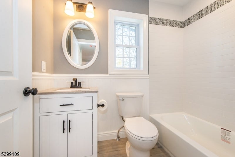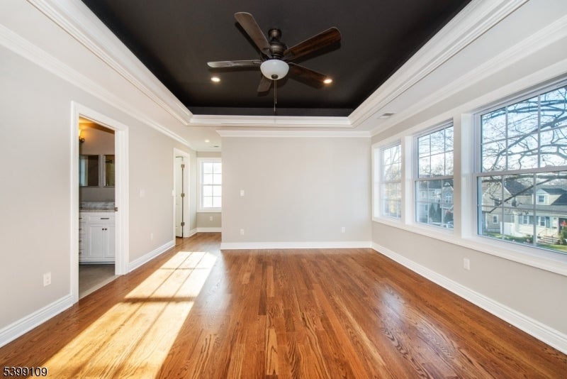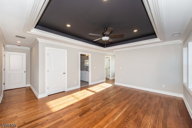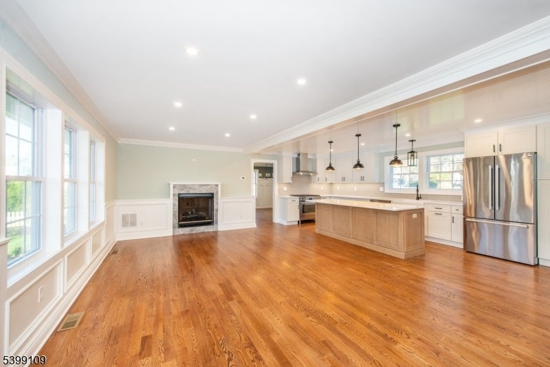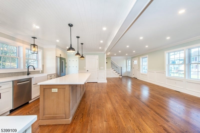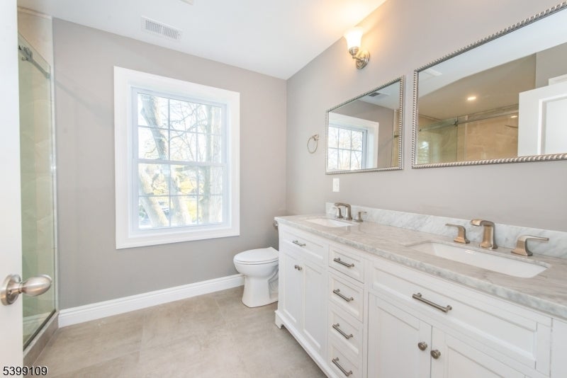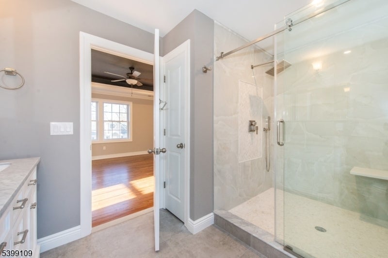 This is the one you've been waiting for! A stunning 3,800 sq ft modern farmhouse that perfectly blends timeless elegance with eclectic sophistication. Curb appeal is unmatched: striking portico, premium garage door, unique siding, black gutters, and a Belgium block-lined driveway. Inside, you're greeted by a dramatic stone accent wall, oak floors in Early American stain, 1/2 and 3/4 wainscoting, crown molding, and a see-through gas fireplace that connects the living room to the private study. The open-concept flow is perfection.Gourmet kitchen boasts soft-close white shaker cabinetry, light quartz counters with subtle veining, and sleek upscale Bosch appliances. The 8-ft dark wood island and walk-in pantry create an inviting and functional space. 1st floor entrance into the 2-car fully insulated garage with rare separate entrance to the finished basement featuring a rec space, and half bath.Upstairs you'll find an unusual 5 bedrooms on one level. East-facing primary suite features tray ceiling with uplighting, two oversized walk-in closets with custom systems, and a spa-like bath. Practical 2nd-floor laundry, plus a shared hall bath with a dual tub and oversized shower. Outside step onto the expansive paver patio and enjoy the level oversized back yard, ideal for entertaining. Top-rated West Essex Regional schools, minutes to South Mountain Reservation, Turtle Back Zoo, and charming downtown Caldwell. New 200-amp service, impeccable finishes throughout.Wont last!
