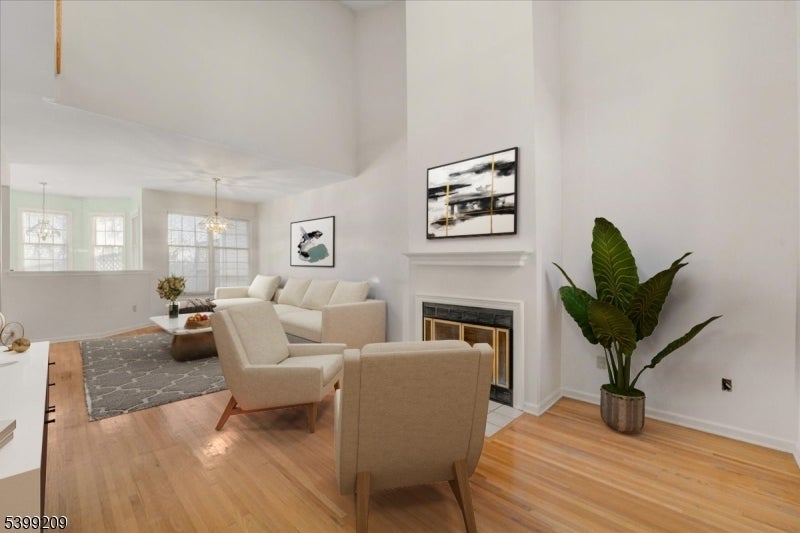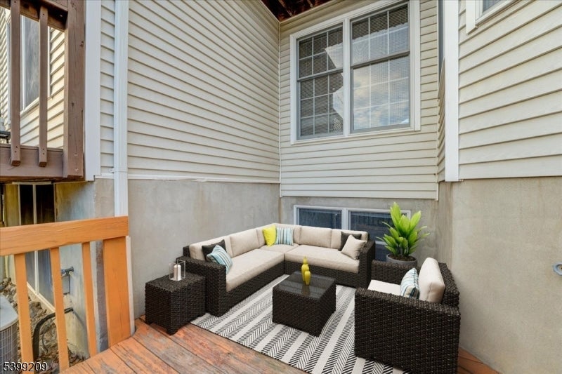Welcome to Skyline Village at Lincoln Park ? a highly desirable townhouse community offering resort-style living with a sparkling pool, country-club clubhouse, and beautifully landscaped surroundings. This spacious multi-level home features an insulated 1-car garage, private driveway, and recently replaced 3D architectural roof with seamless gutters tied directly into the French drain system for added peace of mind. Step inside to an impressive family room adorned with soaring vaulted ceilings, recessed lighting, hardwood flooring, and a cozy wood-burning fireplace that creates the perfect atmosphere for relaxing or entertaining. A beautiful multi-level deck extends your living space outdoors, ideal for morning coffee or summer gatherings. Downstairs, the partially finished basement provides exceptional bonus space, complete with an office area perfect for remote work, hobbies, or additional storage. Upstairs, you'll find two generously sized bedrooms and two full bathrooms. The primary suite is a true retreat featuring vaulted ceilings, a sitting area, a private balcony, and an ensuite bath. Additional upgrades include a replaced furnace, hot water heater, and AC system, ensuring comfort and efficiency throughout the seasons. Located just minutes from the train station with direct access to New York City, this home combines convenience, comfort, and community amenities in one exceptional package.