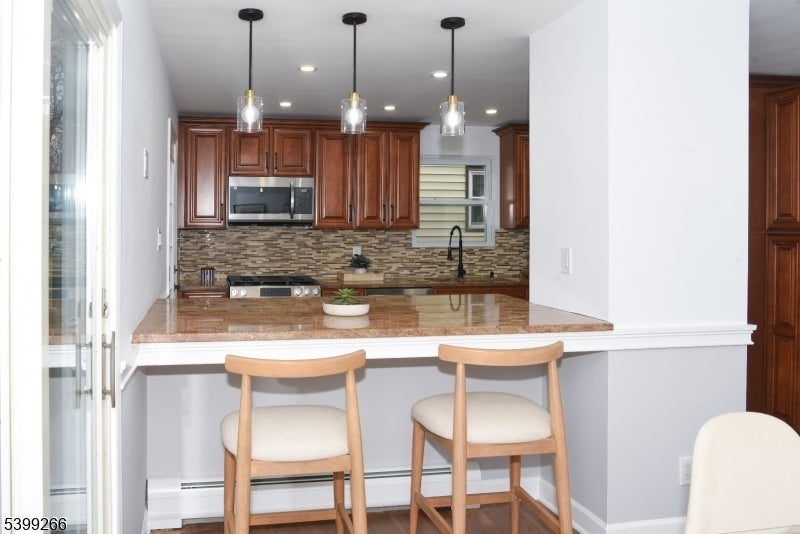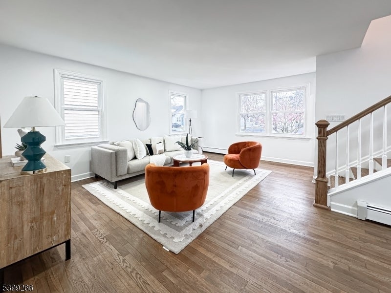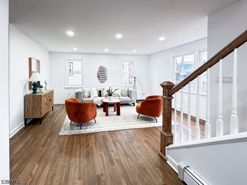 This beautifully updated property features three spacious bedrooms and two stylish bathrooms, including a show-stopping main suite with cathedral ceilings, a skylight, and huge windows that flood the space with natural light. Enjoy brand-new hardwood floors throughout and a bright island kitchen with all-new appliances, ample cabinet space, and a cozy dining area. With a huge deck for outdoor entertaining, high ceilings, and a finished basement for extra space, this home is a commuter's delight just a short walk from trains, buses, and parks. Come fall in love! Seller hold a NJ Real estate Broker License
